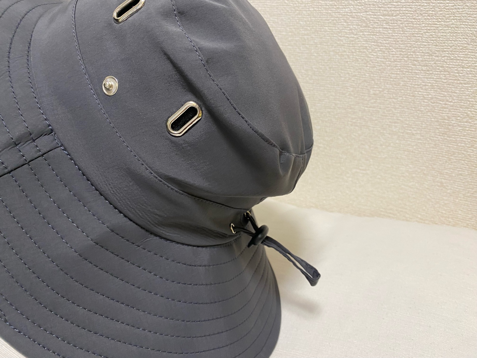 購入した時の記憶だと、HPに後ろの紐で多少帽子のサイズ調整が可能。との事だったのですが