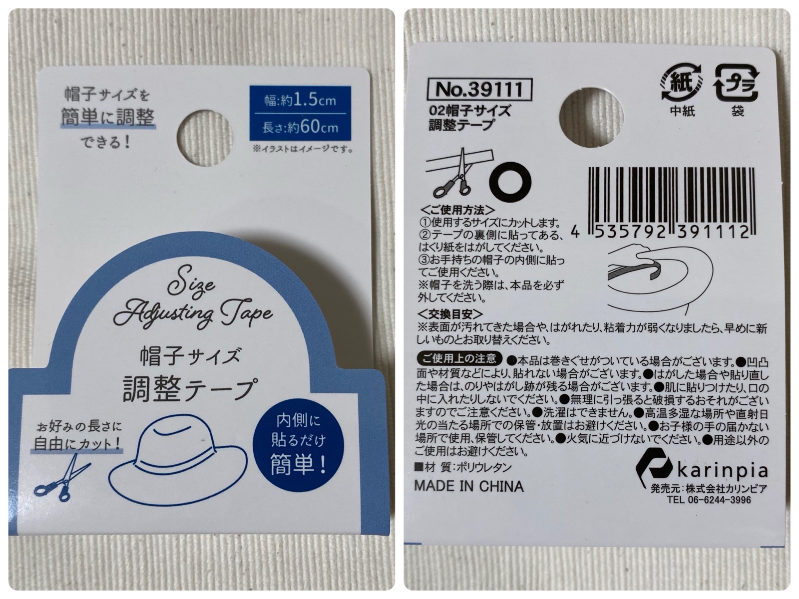 キャンドゥ 「帽子サイズ 調整テープ」税込み110円