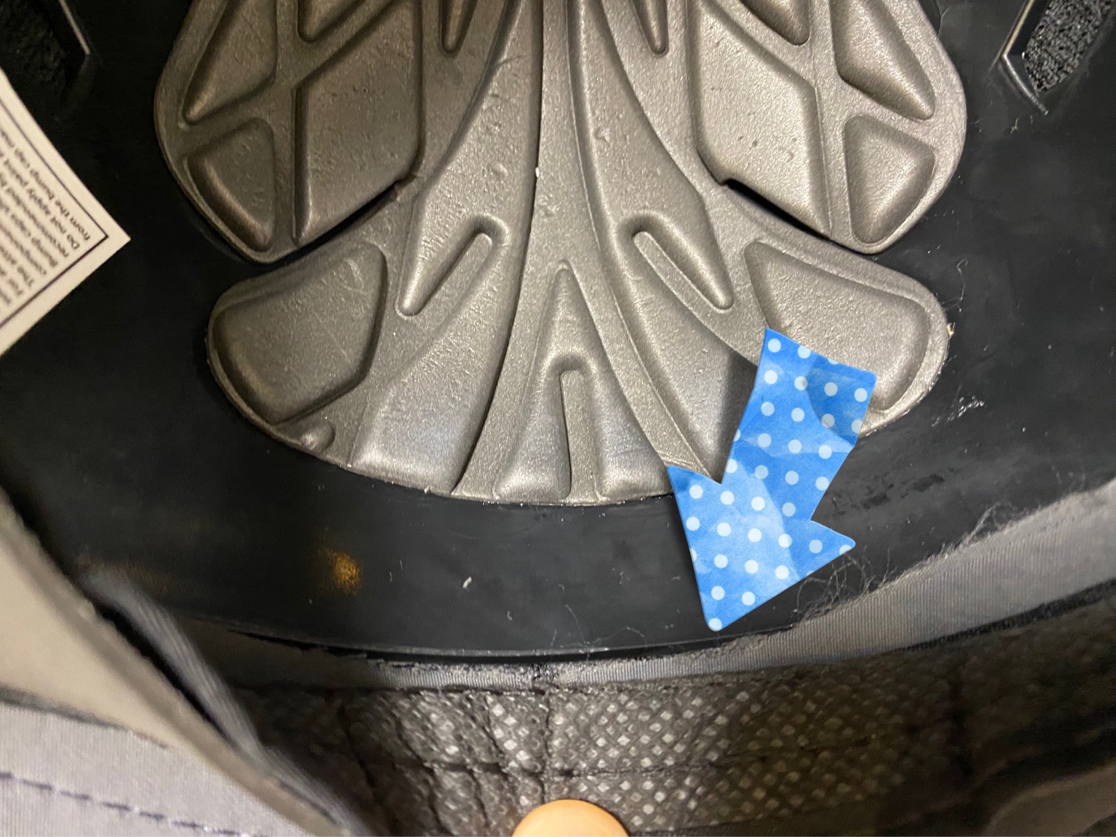 ココに、サイズ調整テープを貼れば、汚れ防止にもなるかも??