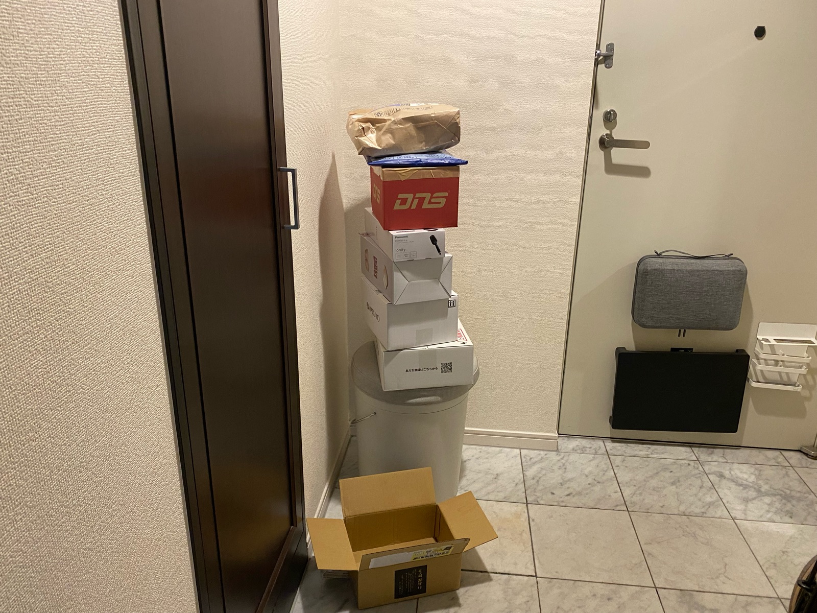 荷物が積みあがっているので、荷物を開封して整理。