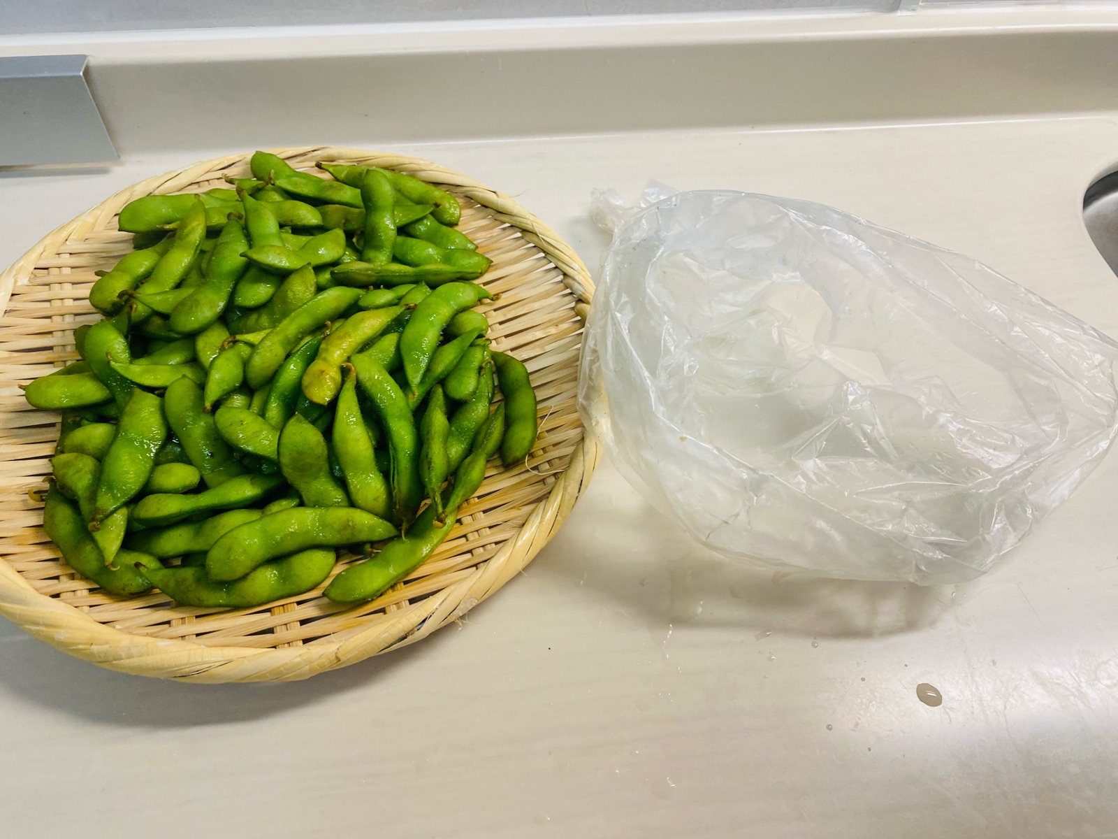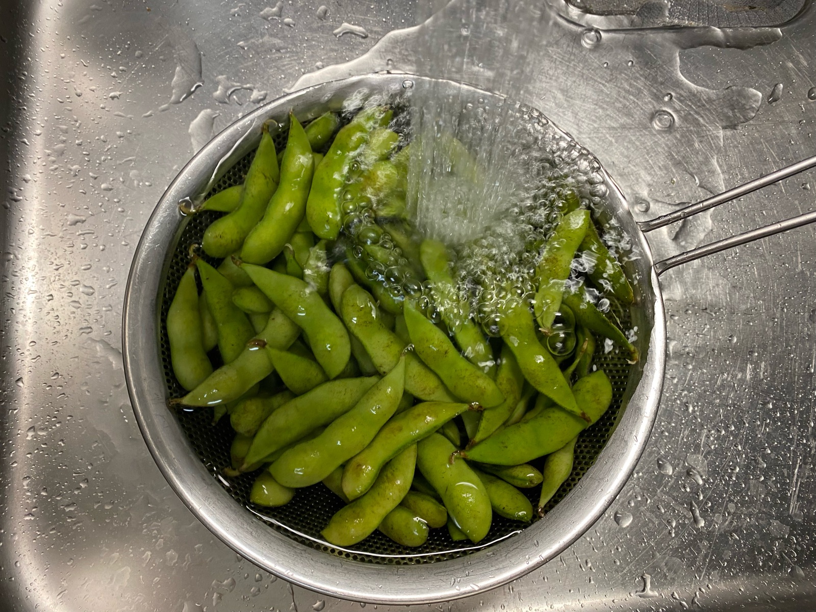 サッと枝豆を水洗いして