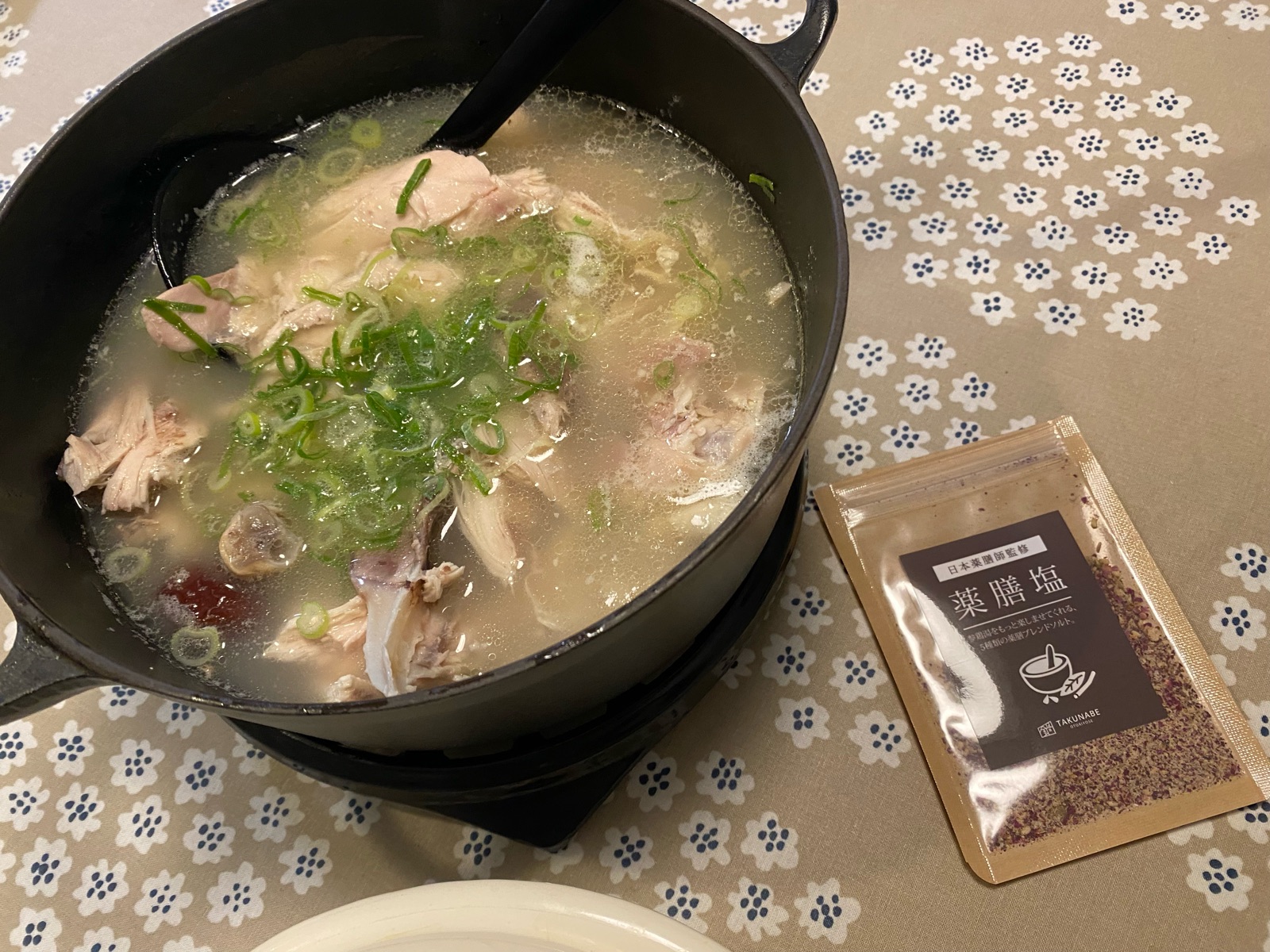 九州の「水炊き」のめちゃくちゃ濃厚スープ+朝鮮人参やナツメ・にんにくが入っているからか少し漢方っぽいと言うか、身体に良いのがわかる味。←どんな味?(笑)