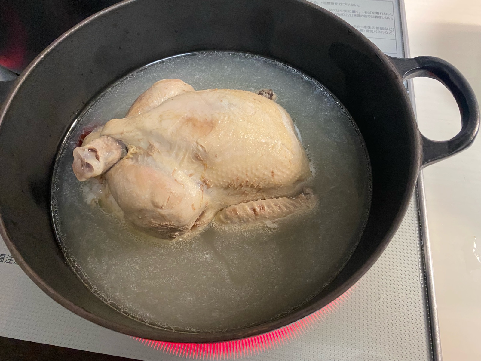 鶏が丸ごと入ったスープごと冷凍されたパックで届きました。