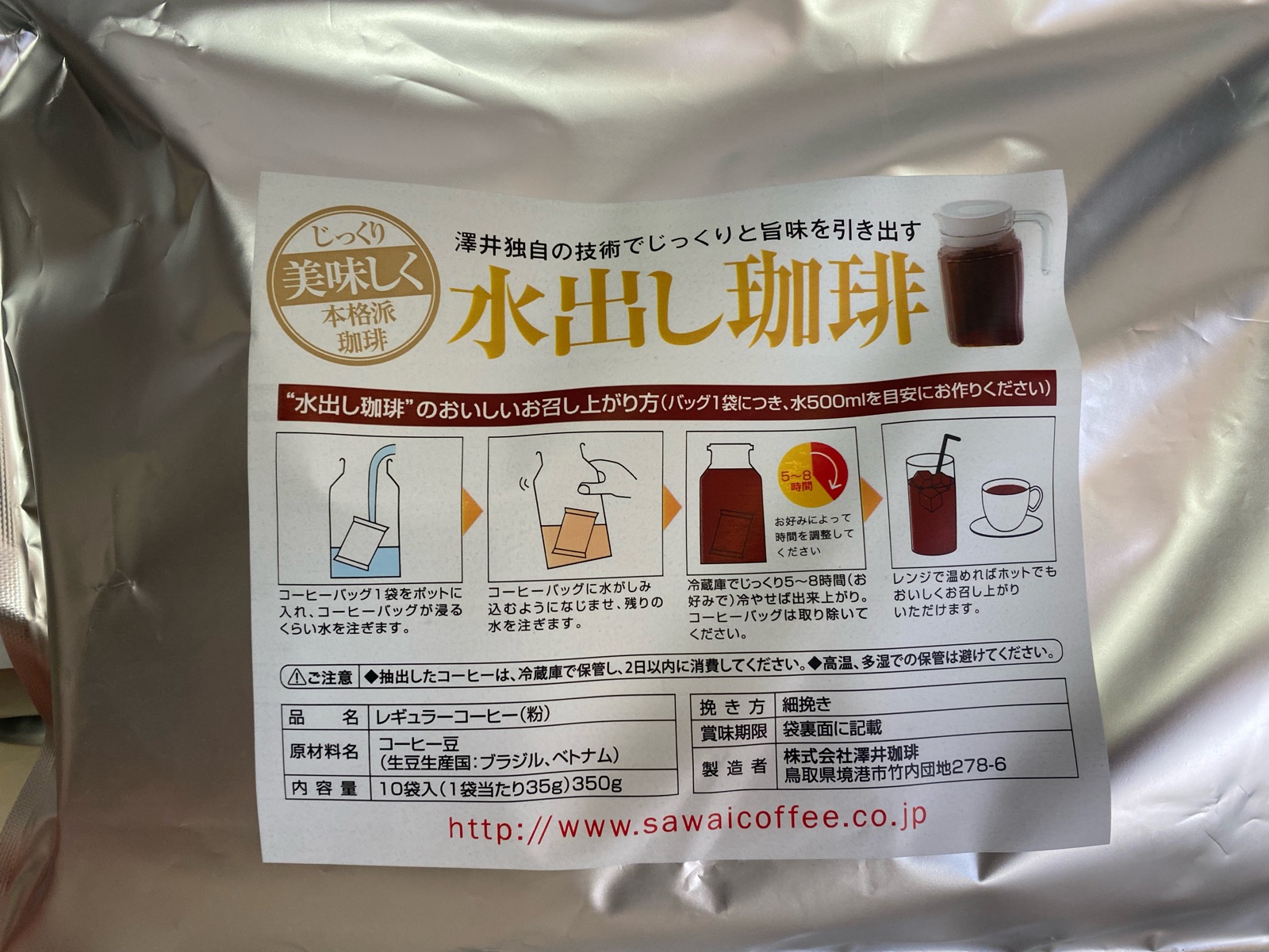 澤井珈琲の「水出し珈琲」をお試しさせて頂きました。