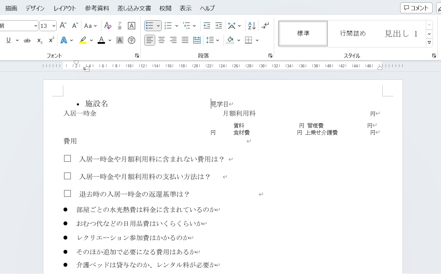 少し前からの【1日1ヶ所】は老人ホームを見学する際のチェックポイントを勉強。