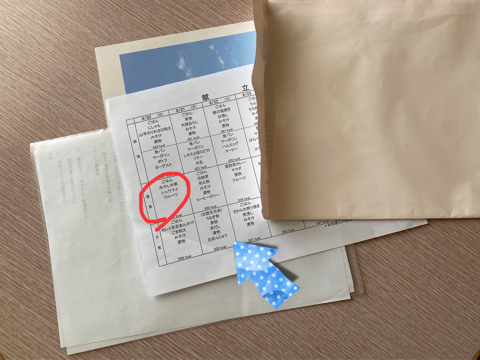 例えば昨日の夜(青い矢印)は誕生日会があり、メニューは鰻丼。