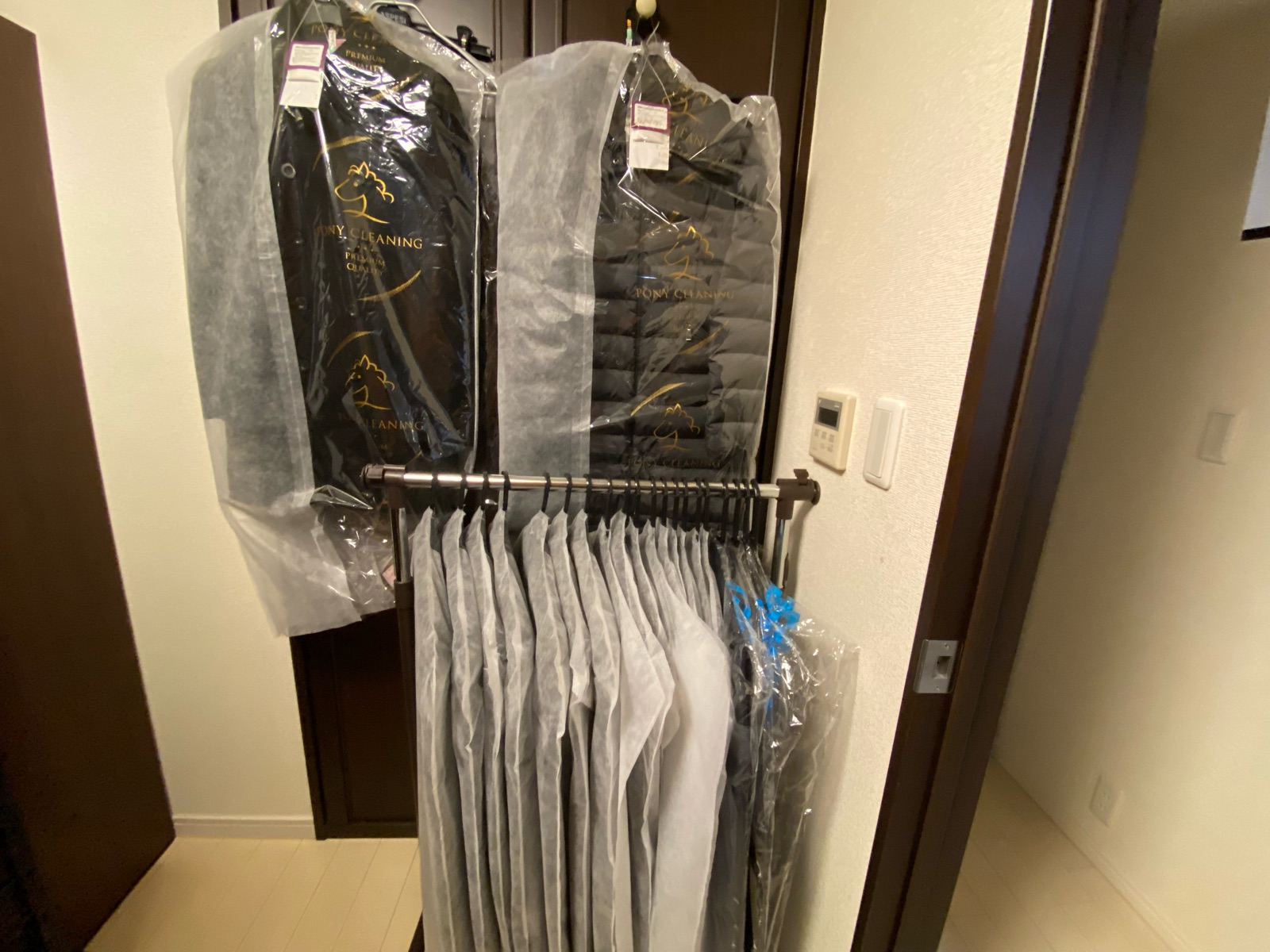 残したビニール袋1枚に、掛け替えたハンガーを入れてクリーニング店へ持っていく予定。