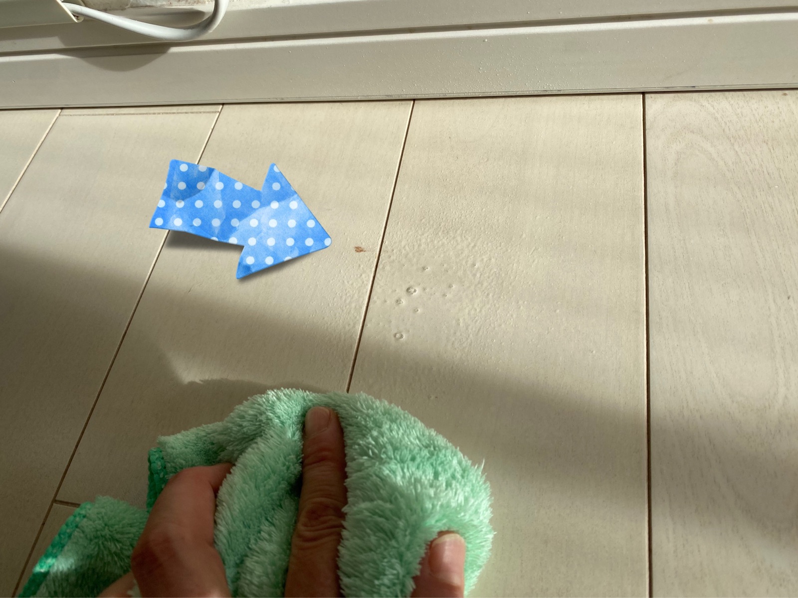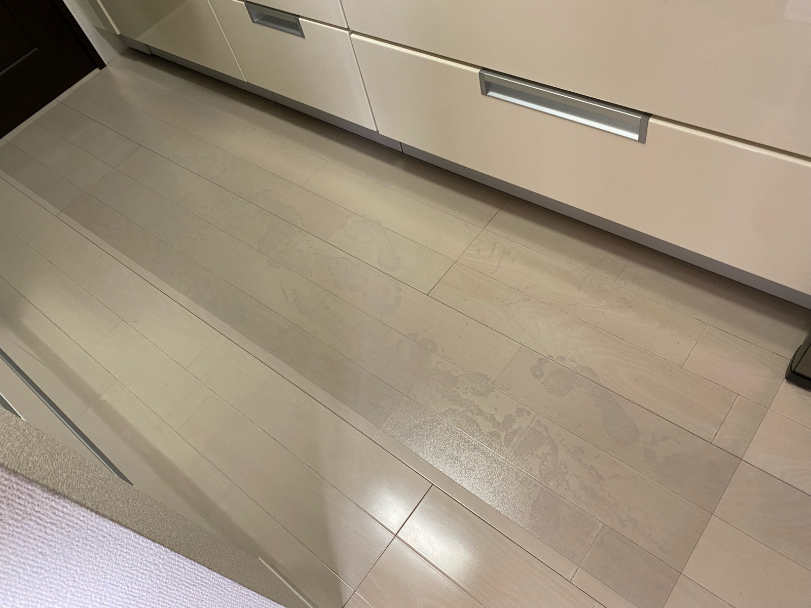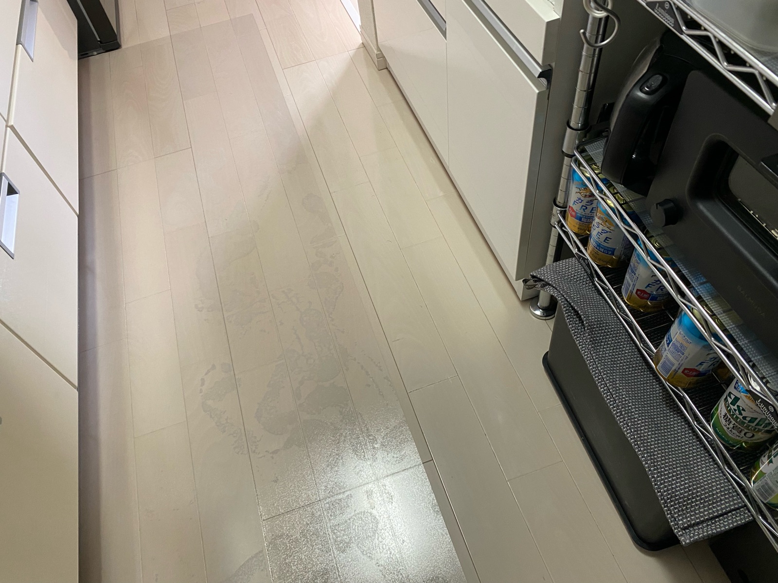キッチンマットを戻して、キッチンマットの上からも拭き掃除