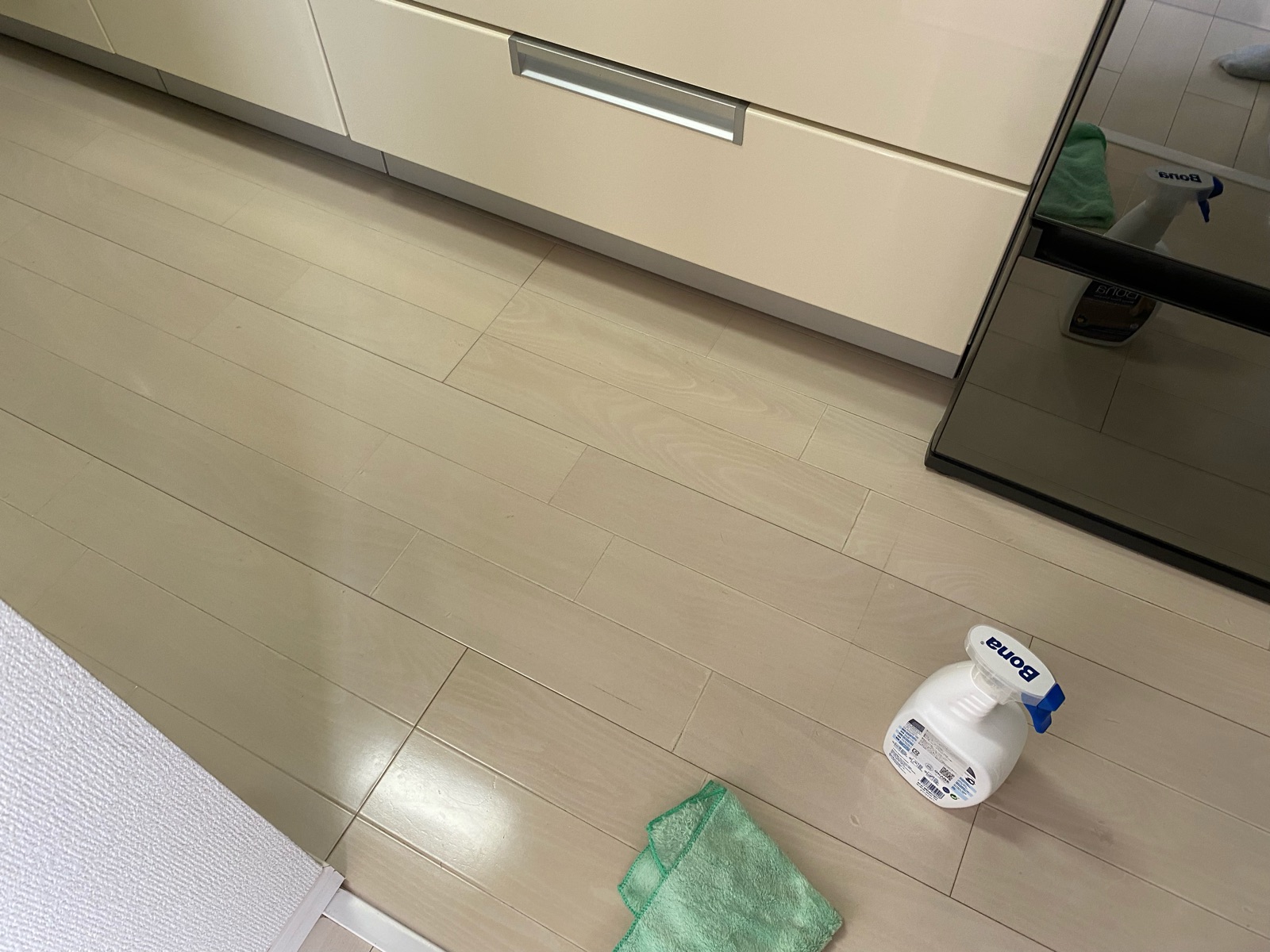 今日はBonaのフロアクリーナーを使って汚れを確認しながら、手で拭く事に ![]() |