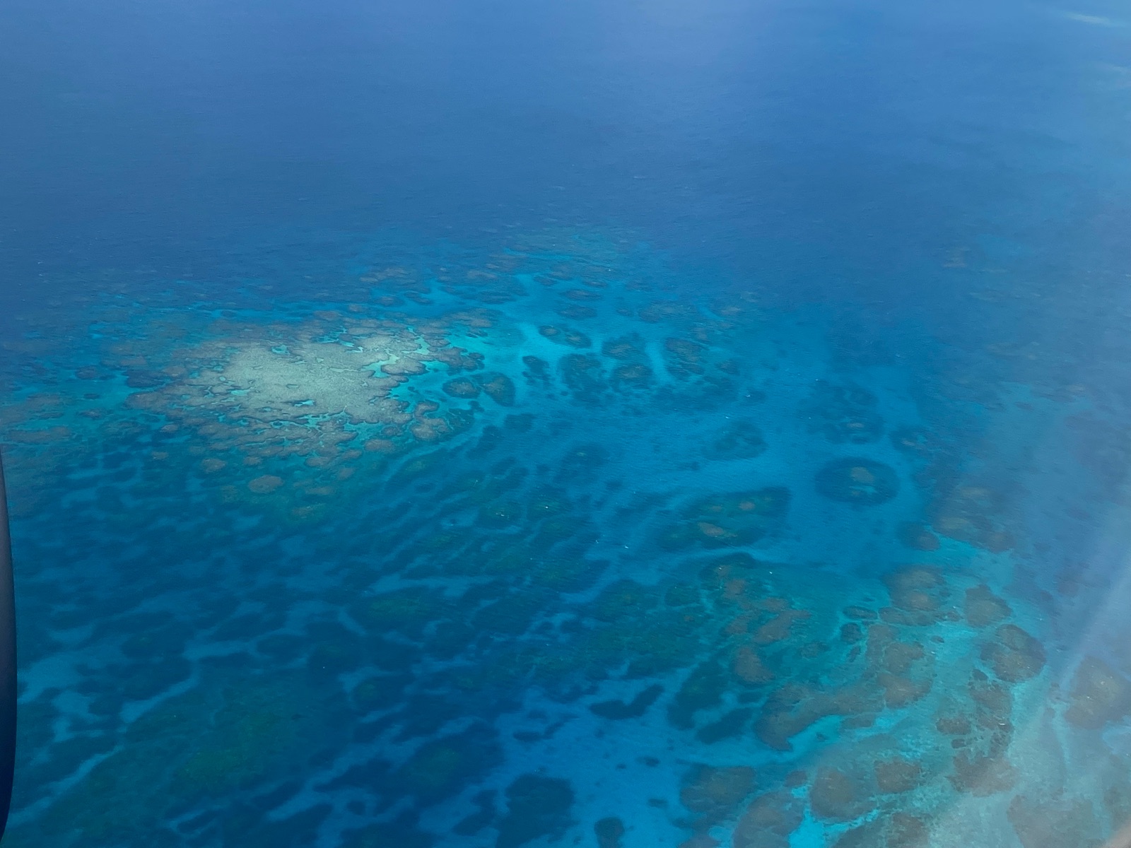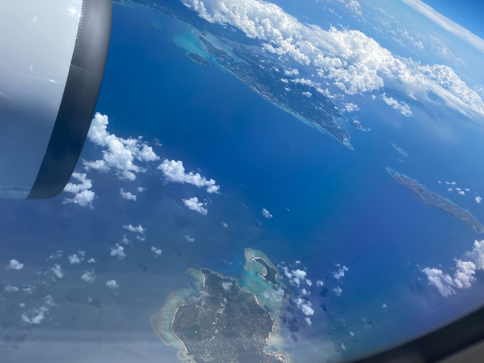 久しぶりに見た宮古島の海。飛行機から見てもやっぱりキレイ!!