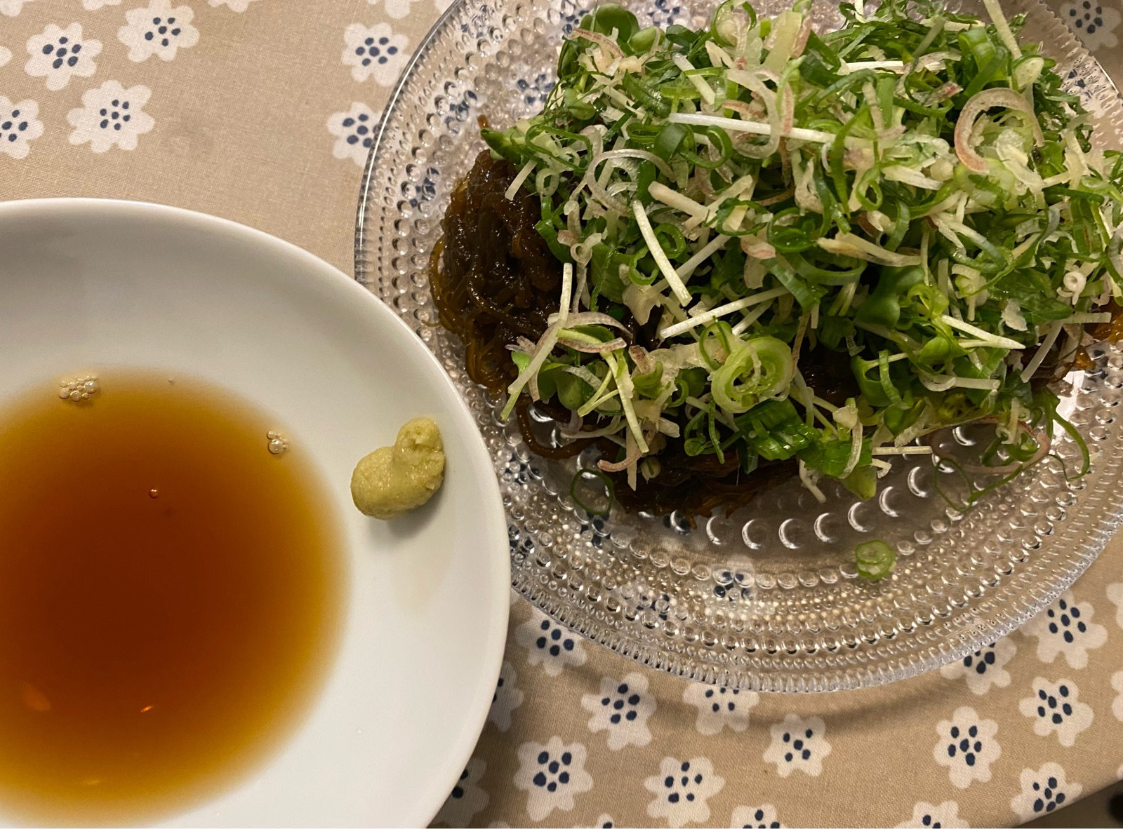 材料は、・もずく・素麺つゆ・わさび・黄金の薬味