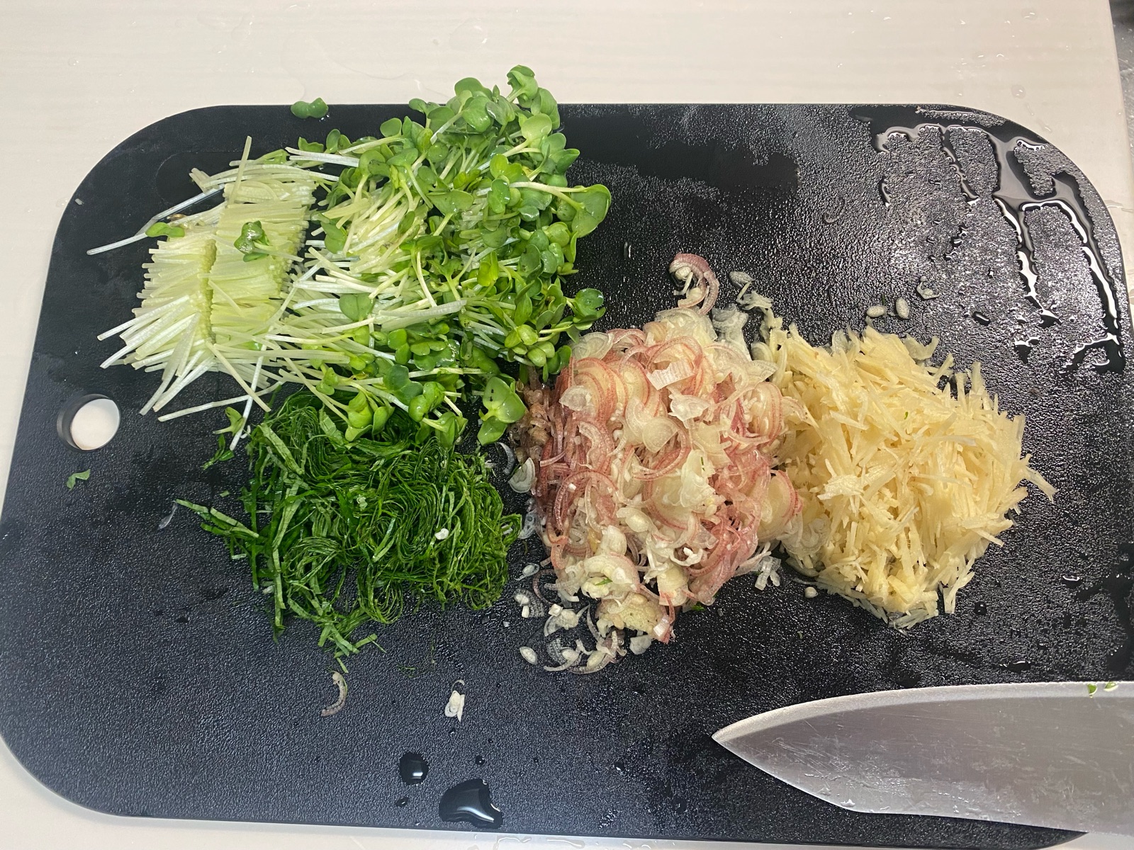 全ての材料を混ぜてサッと水にさらして水切りすれば「薬味」が完成!