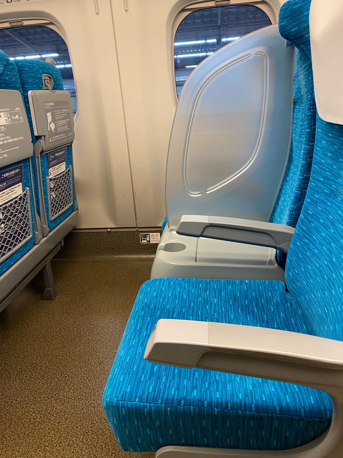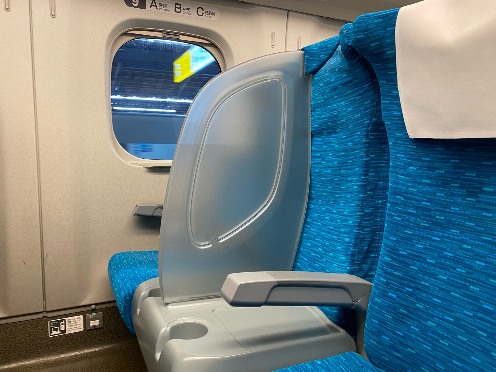 新幹線の3人掛けシートの真ん中がドリンクホルダーとパーティションになっています。