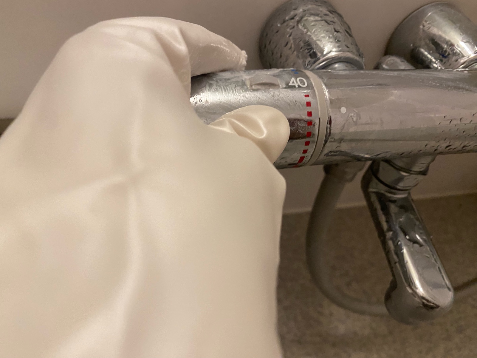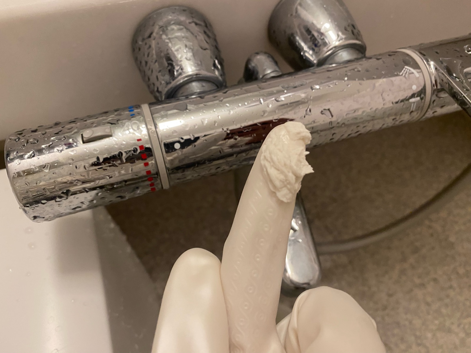 浴室鏡やカランのウロコ汚れに「ゴム手袋」+「多目的クレンザー」おススメ!!