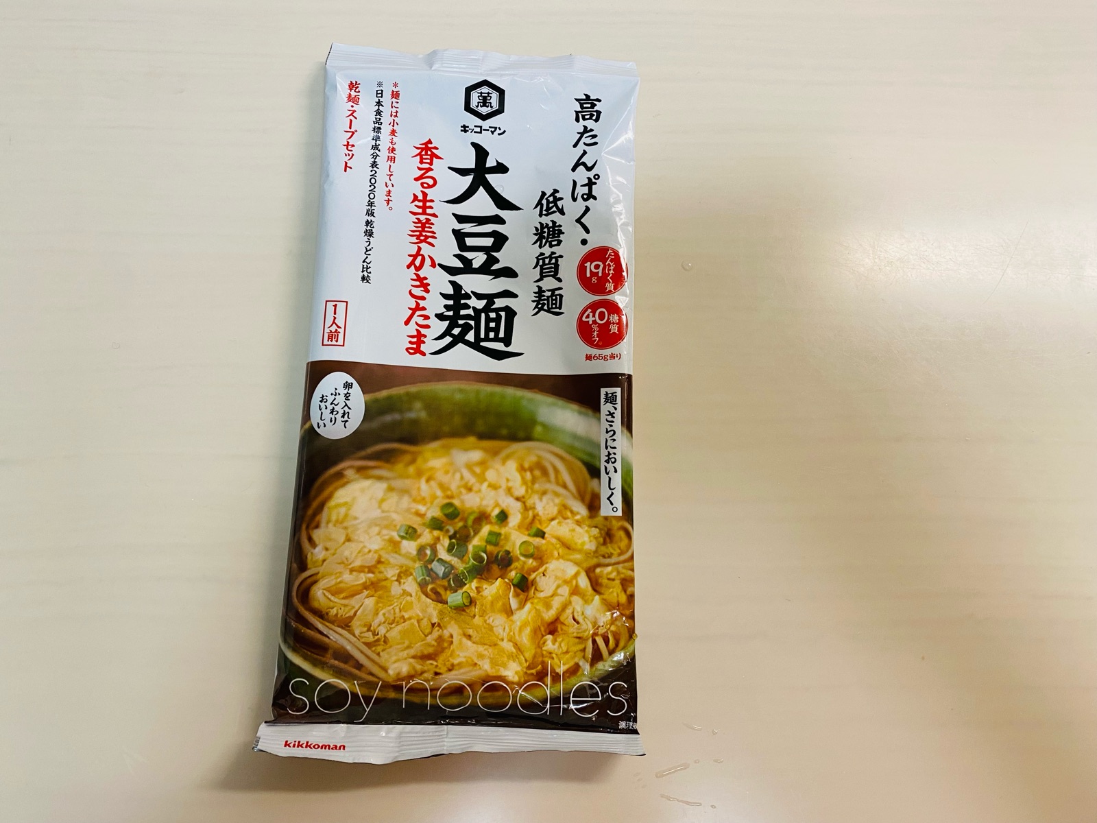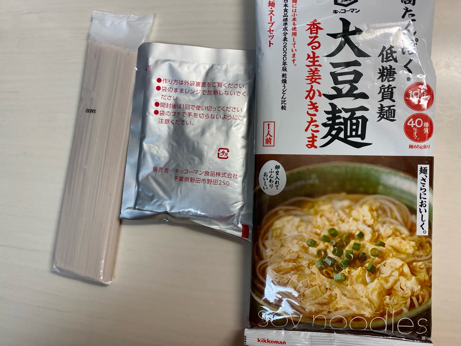 大豆を50%ブレンドした高たんぱく・低糖質な麺に、簡単調理で満足感のある1食に仕上がる生姜かきたまスープをセットにしました。