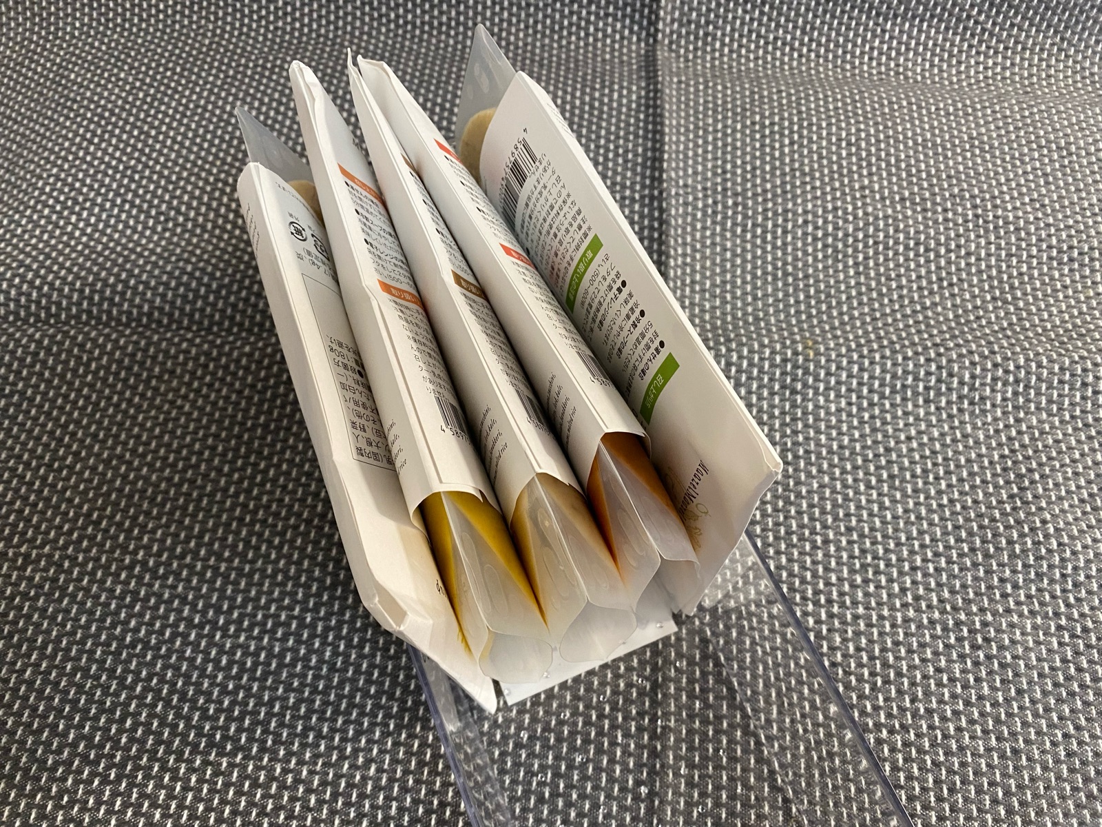 このスープは袋タイプなので、5袋でもこれだけのスペースで保管可能♪