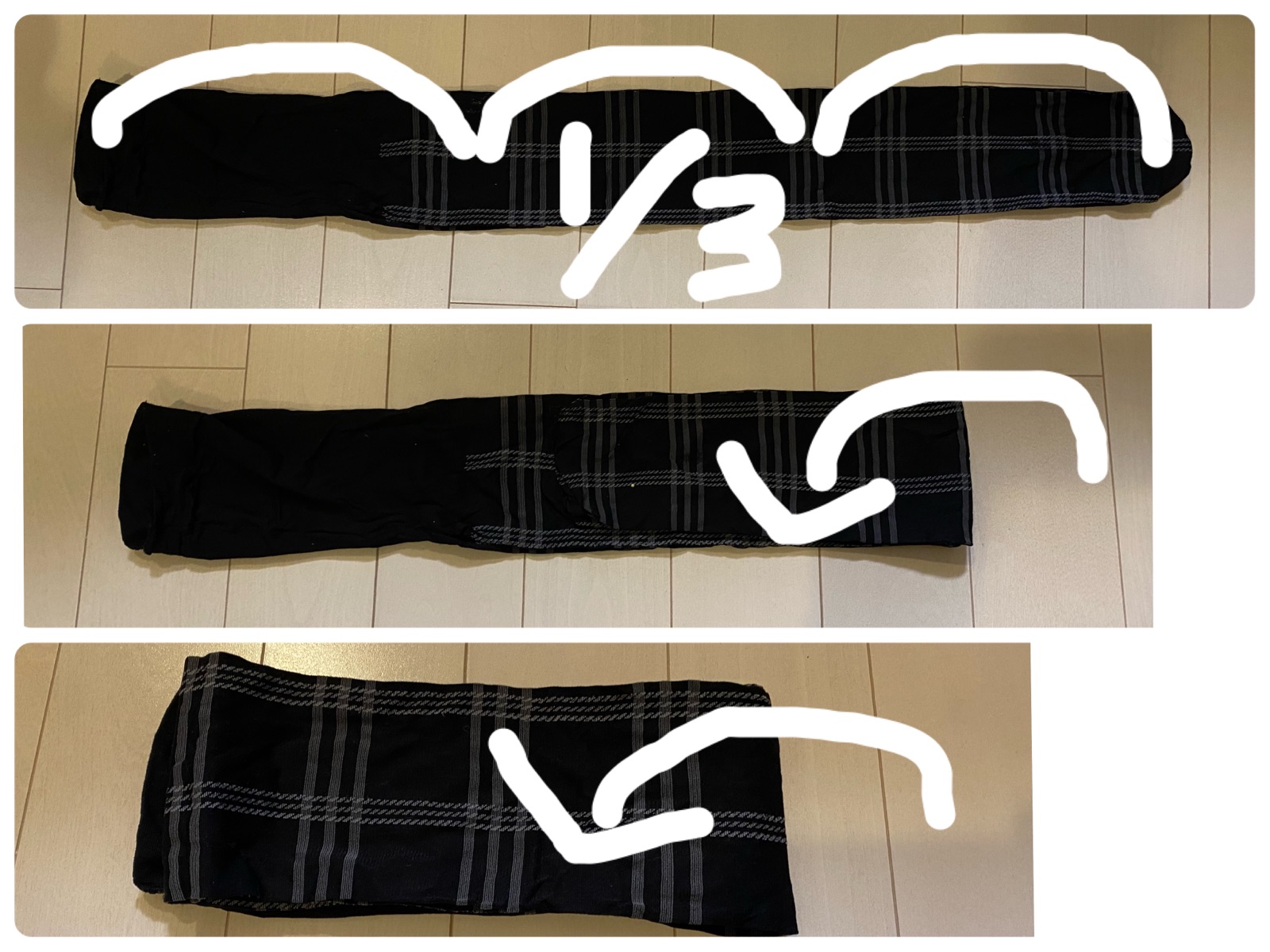 大体でよいので、つま先側から1/3ずつ折りたたみます。