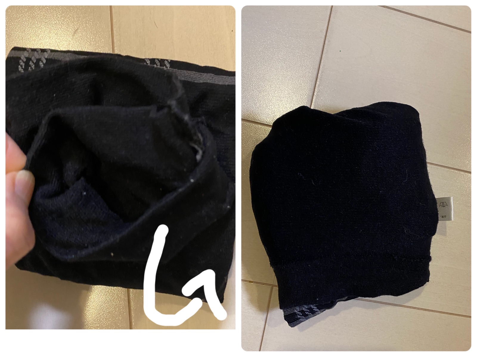このたたみ方にするとラベルが外側になるので、ブランド名やヒートテックかどうか?など