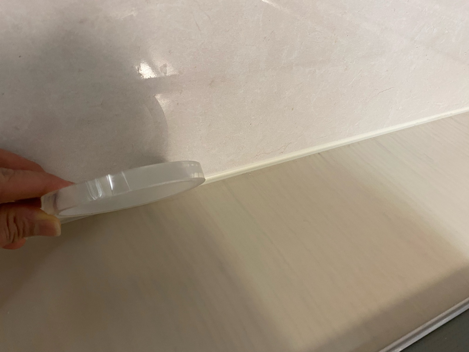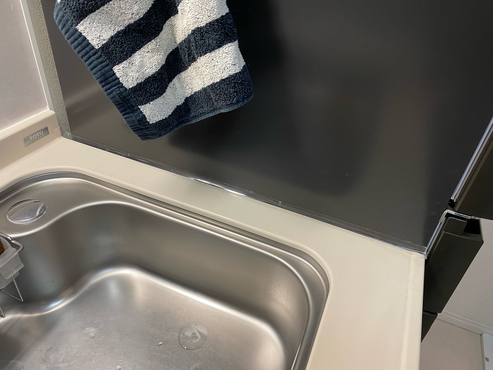 今日の【1日1ヶ所】は「汚れ防止テープのスリムタイプ」をキッチンのコーキング部分に貼って汚れ防止。
