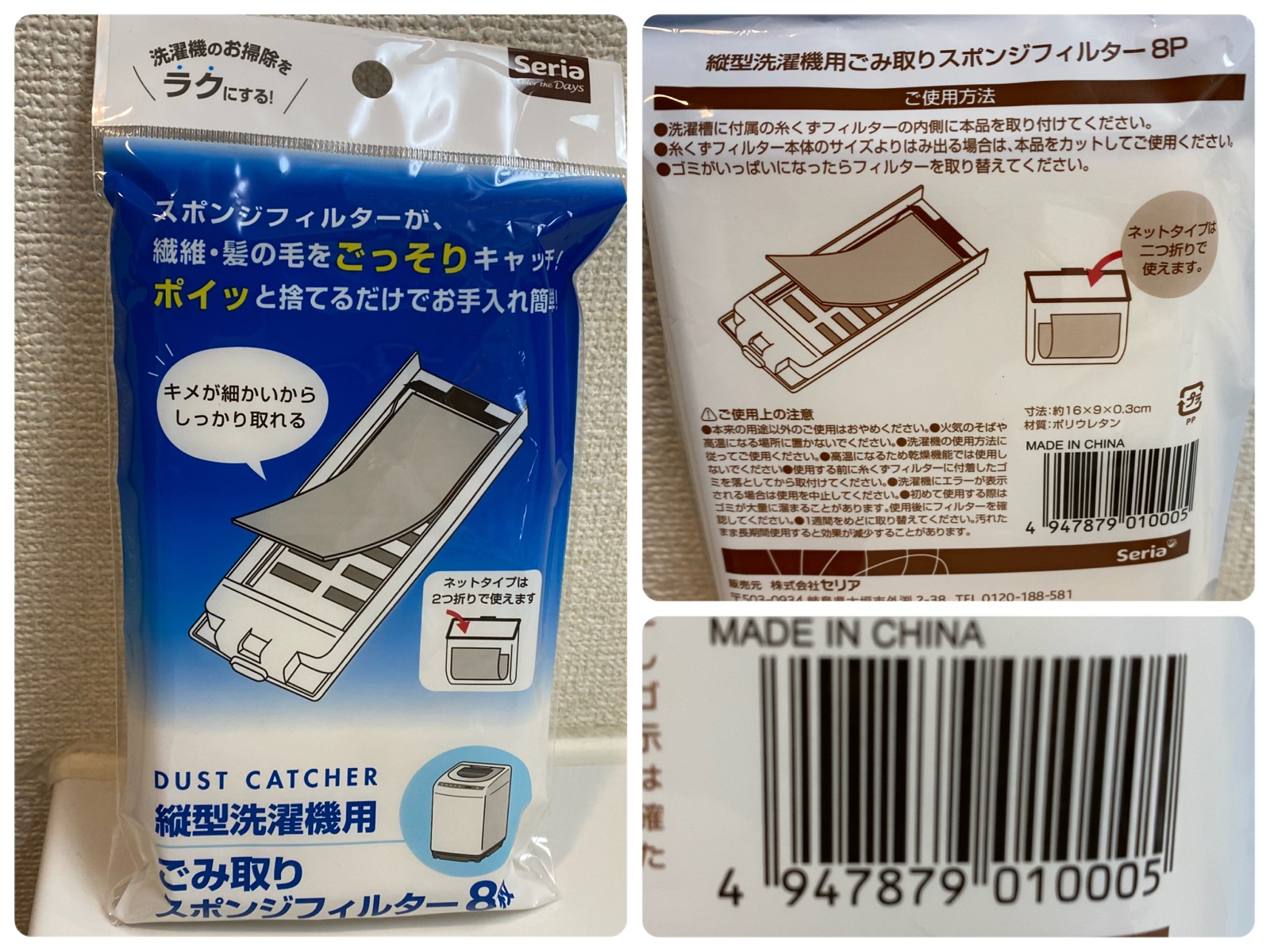 先日みつけた、「ゴミとりスポンジフィルター」 8枚入りでMade In China
