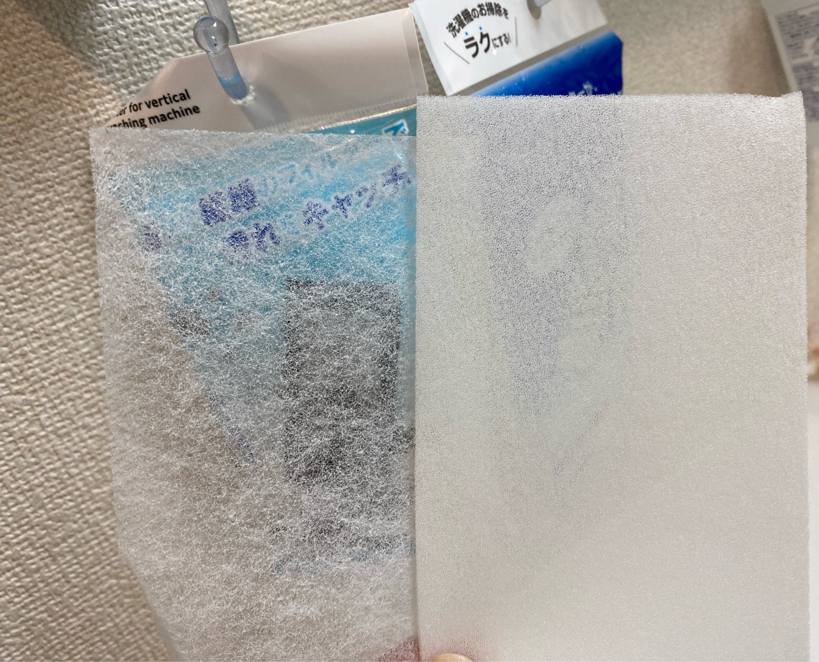 我が家の糸くずフィルターには、「スポンジフィルター」よりも「ごみ取りフィルター」の方が薄くて