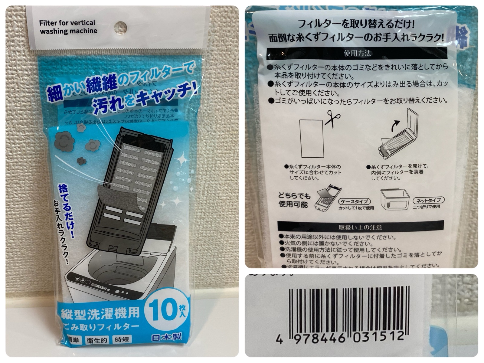 洗濯機の糸くずフィルターだけよりも、細かい繊維くずも集めてくれて