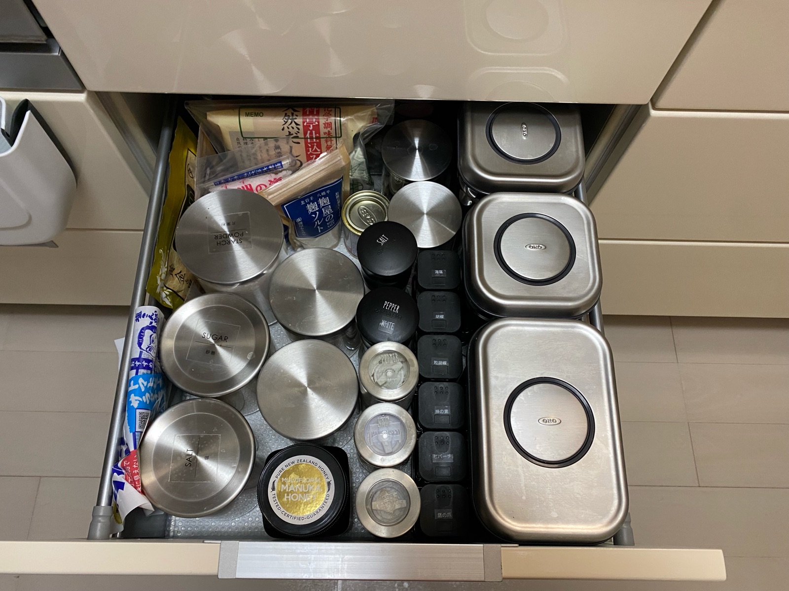 移し替える前もシルバーのステンレス蓋の容器だったので、見た目的には