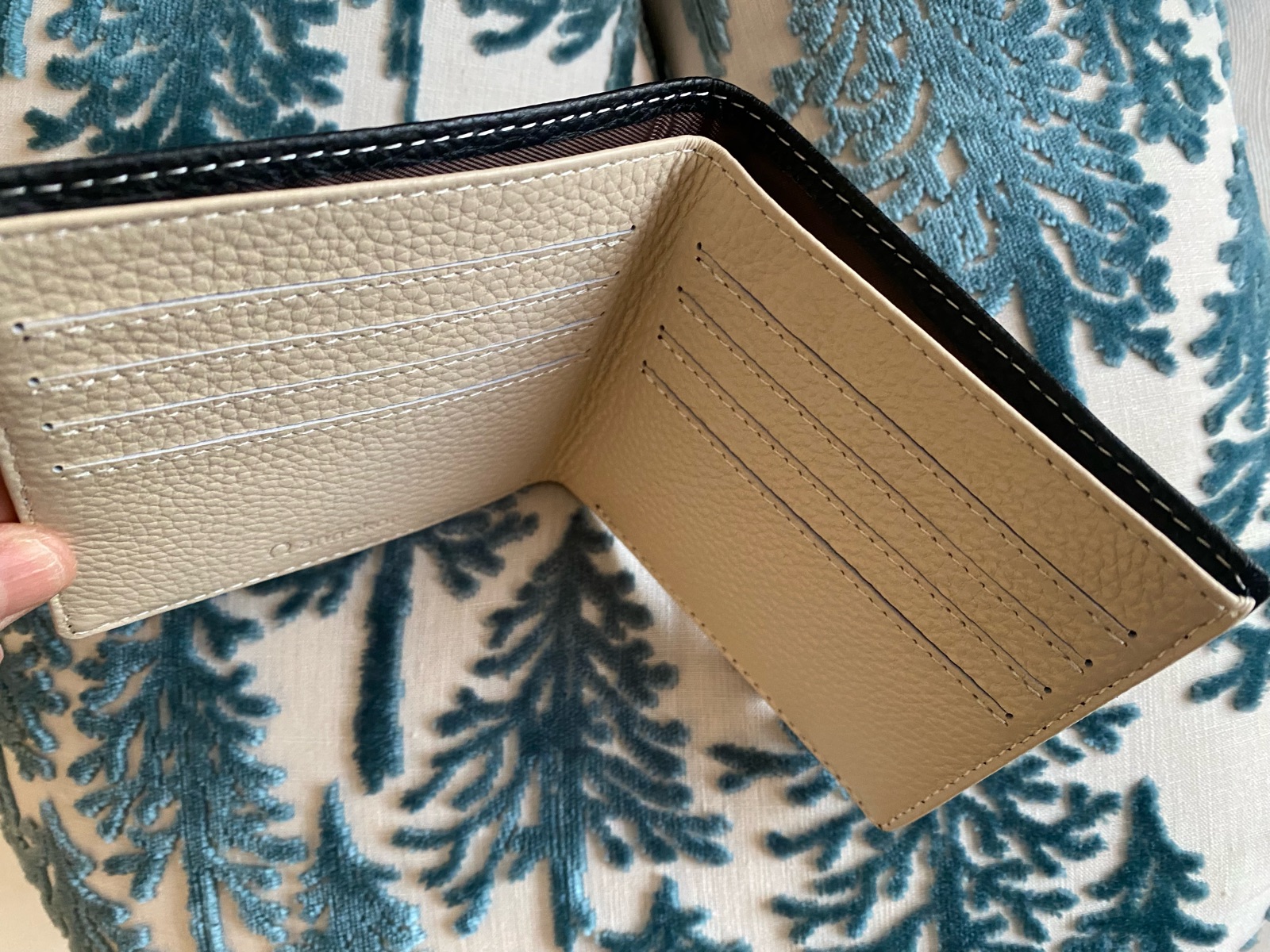 薄いけど、カードはたっぷり収納できて内側が違う色になっているバイカラーなのもオシャレ♪