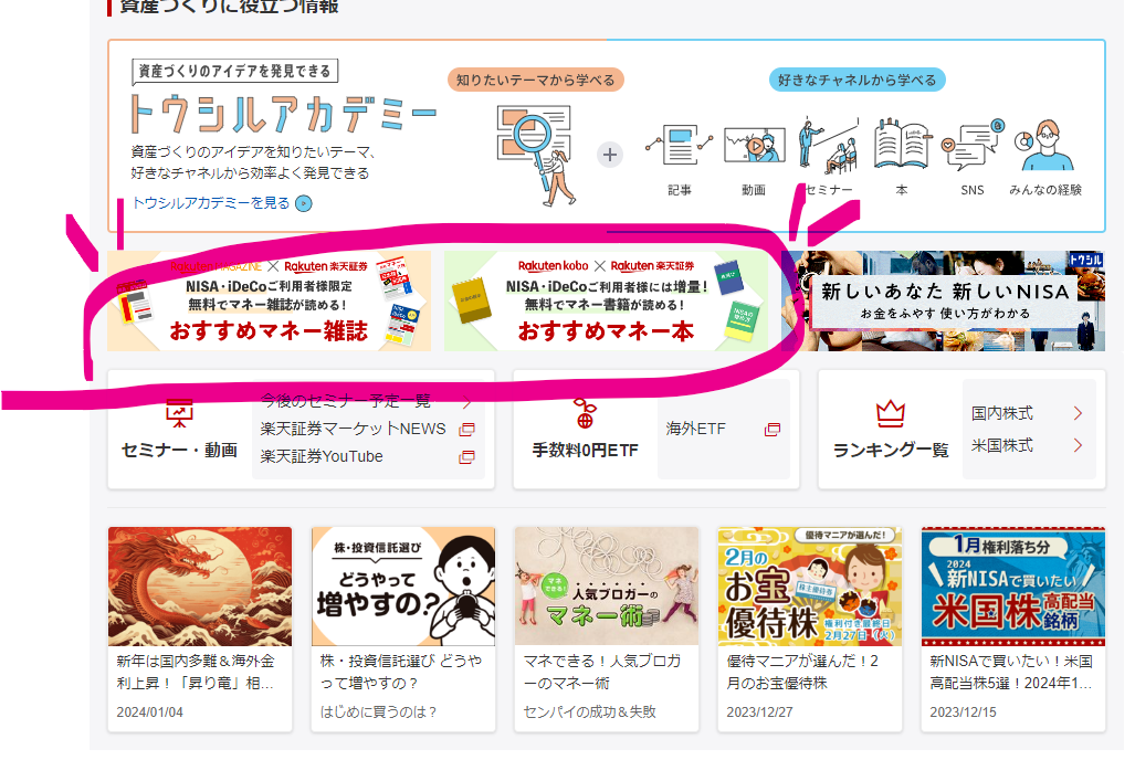 楽天証券に口座があると、毎月無料で「お金」に関する本が読めること!