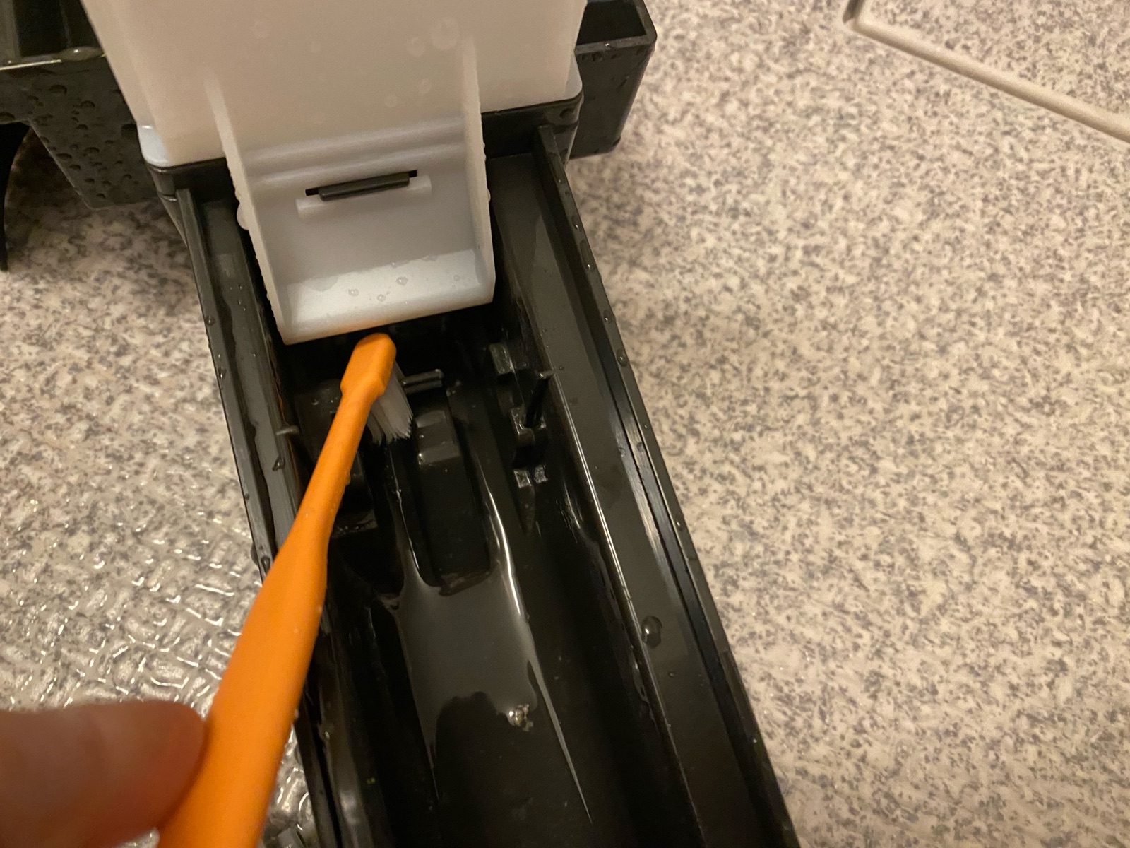 簡単にスポンジで洗って、先月交換した所なのでそのまま「ヨード」を戻して水を入れて