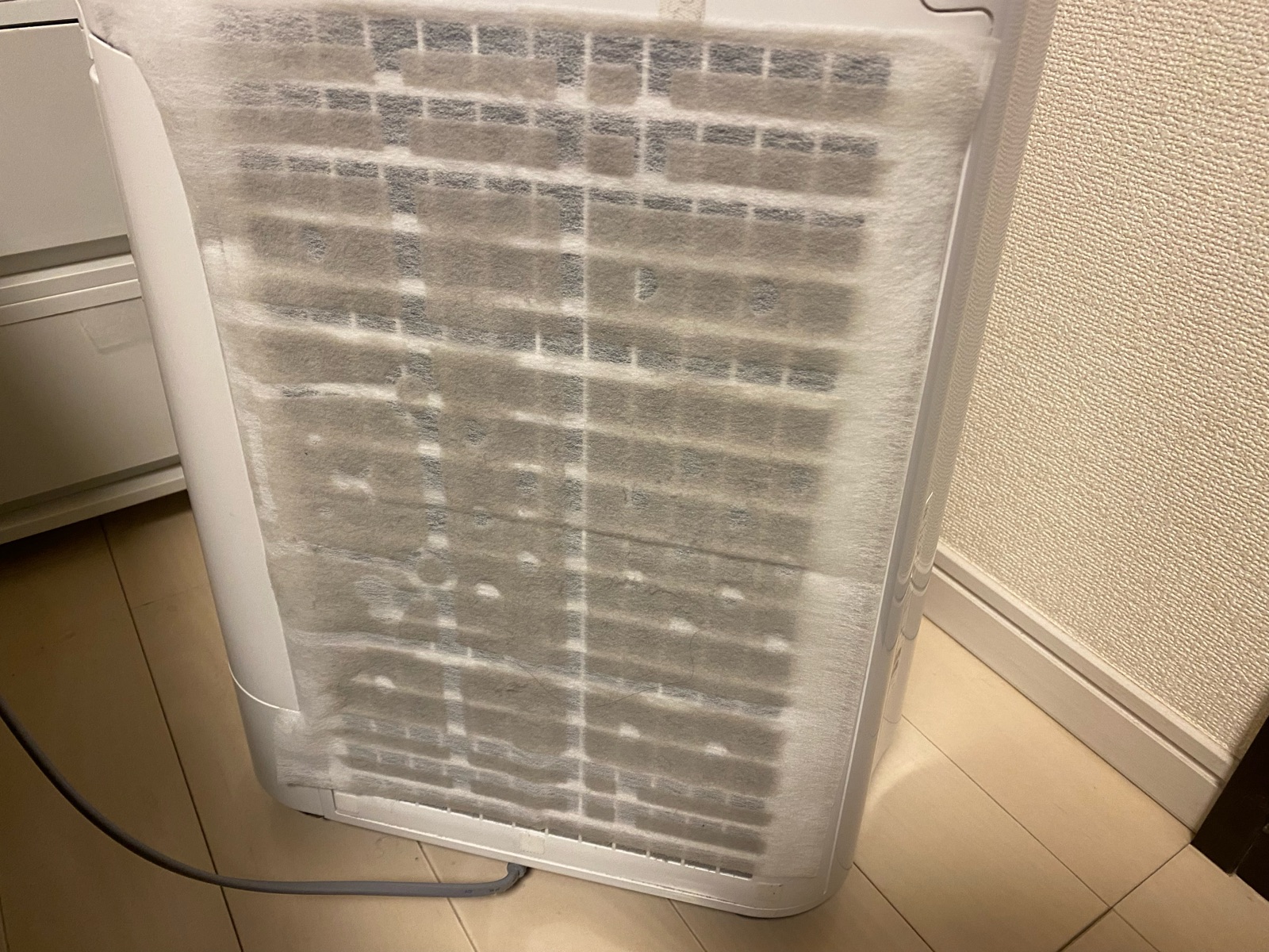 フィルターを取り外すと、フィルターの端は隙間からホコリが入っていたようで