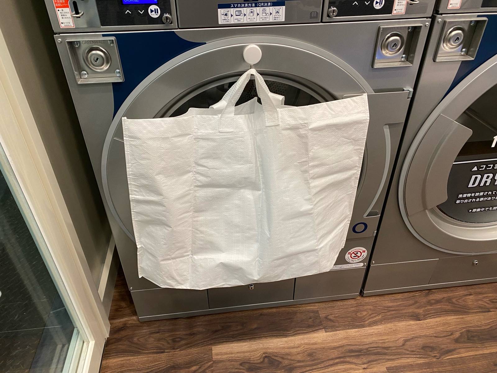 乾燥機にかける洗濯物とエコバッグを持ってお出かけ♪
