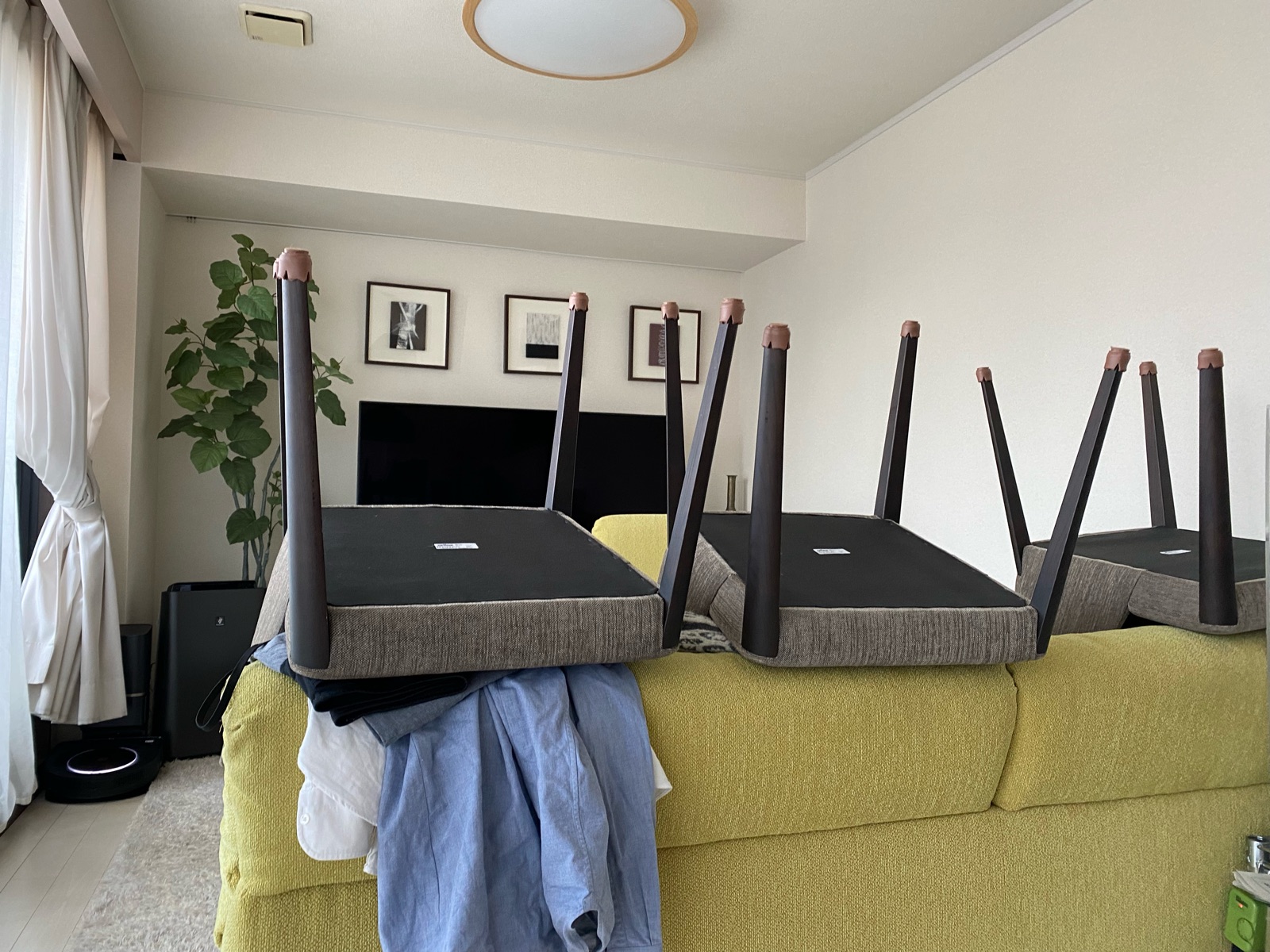 ルンバが掃除を終えてくれているので、先ほどのイスを戻して