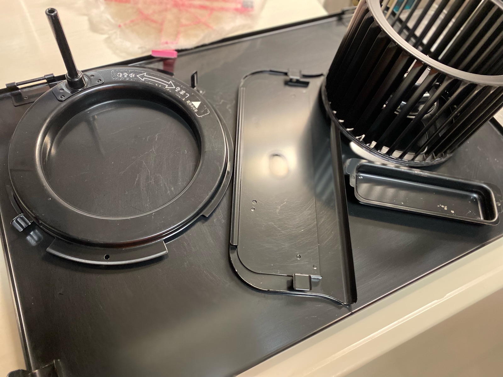 取り外したレンジフードの部品は油汚れは、見た目ではわからないくらいに