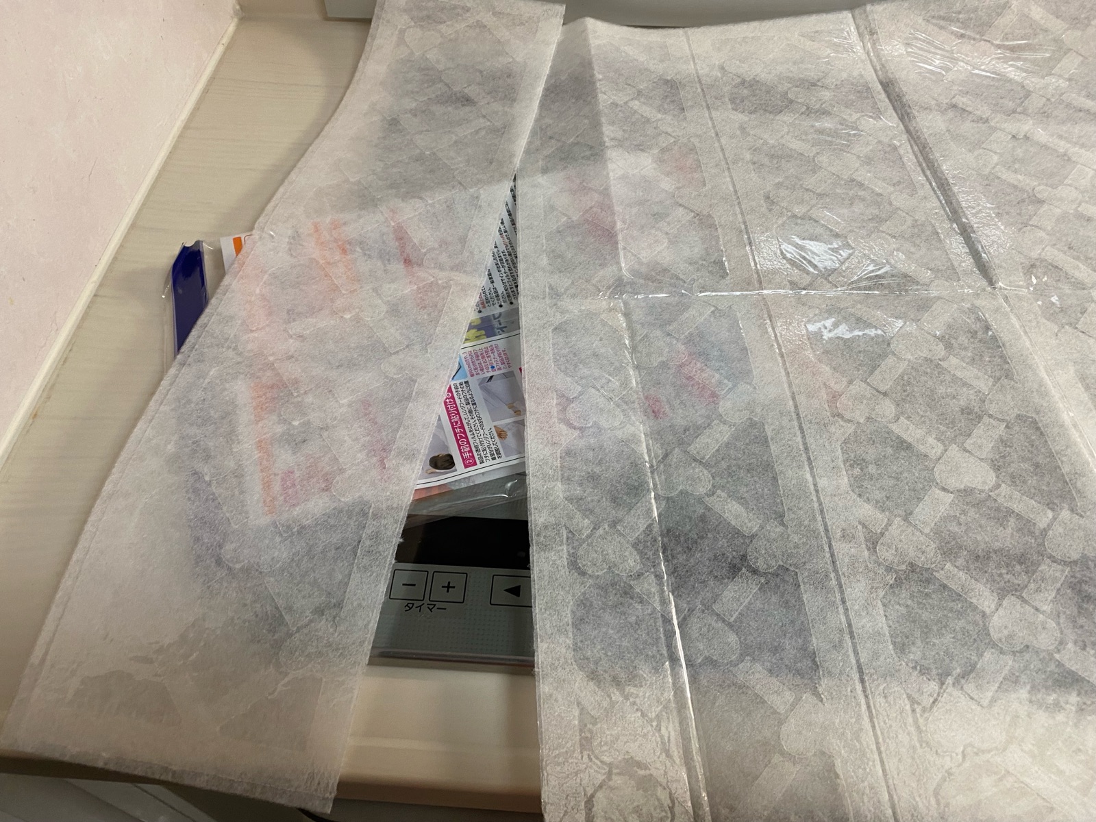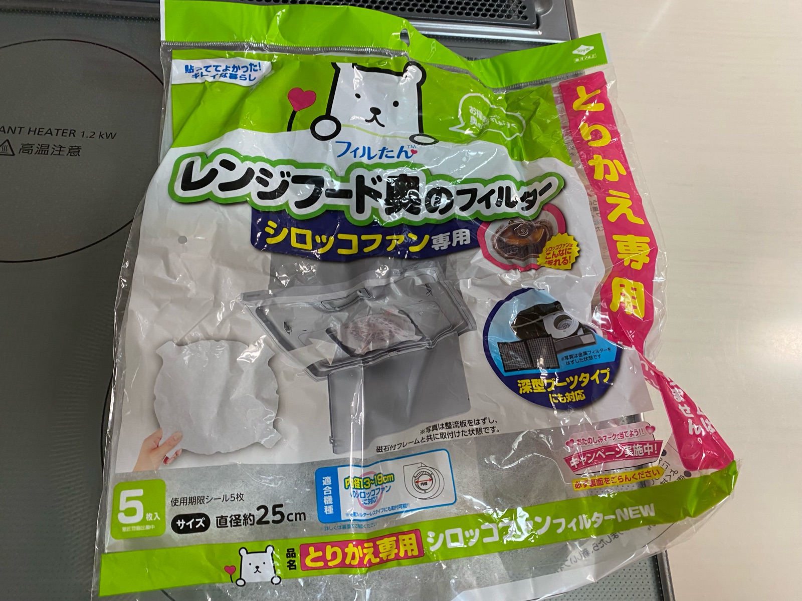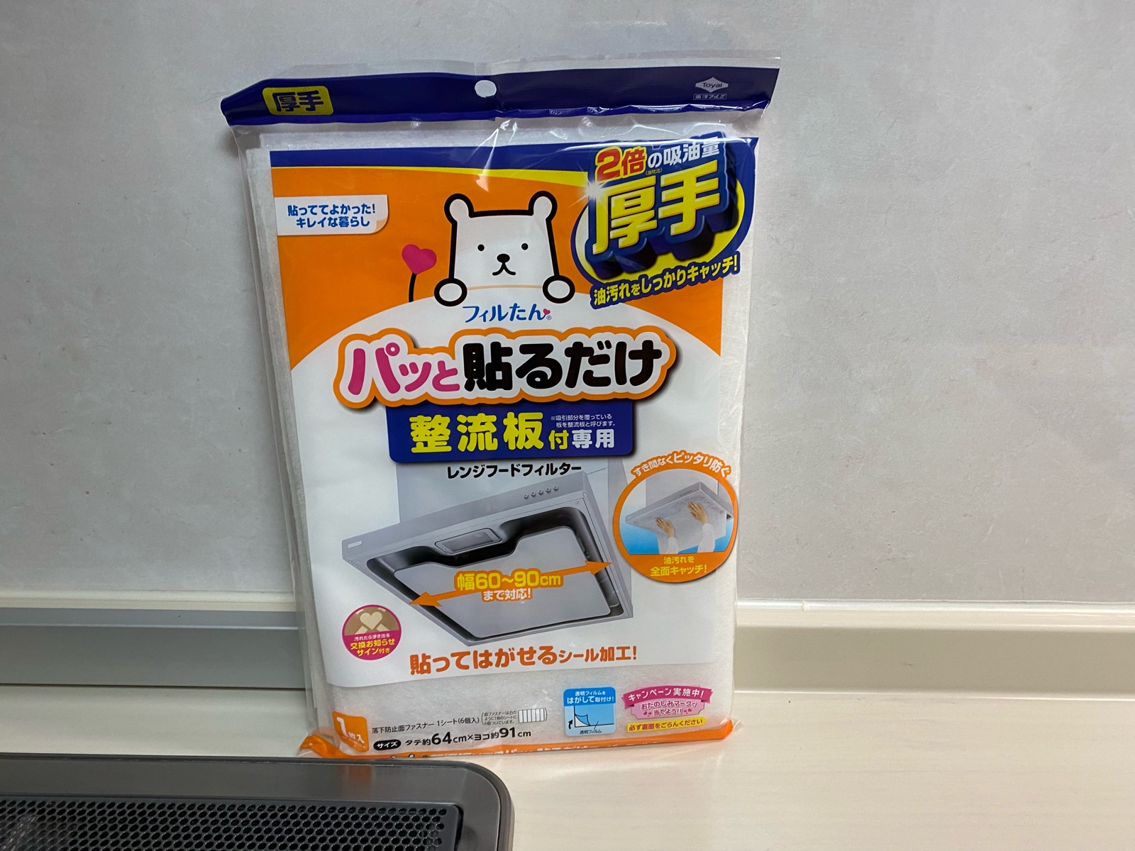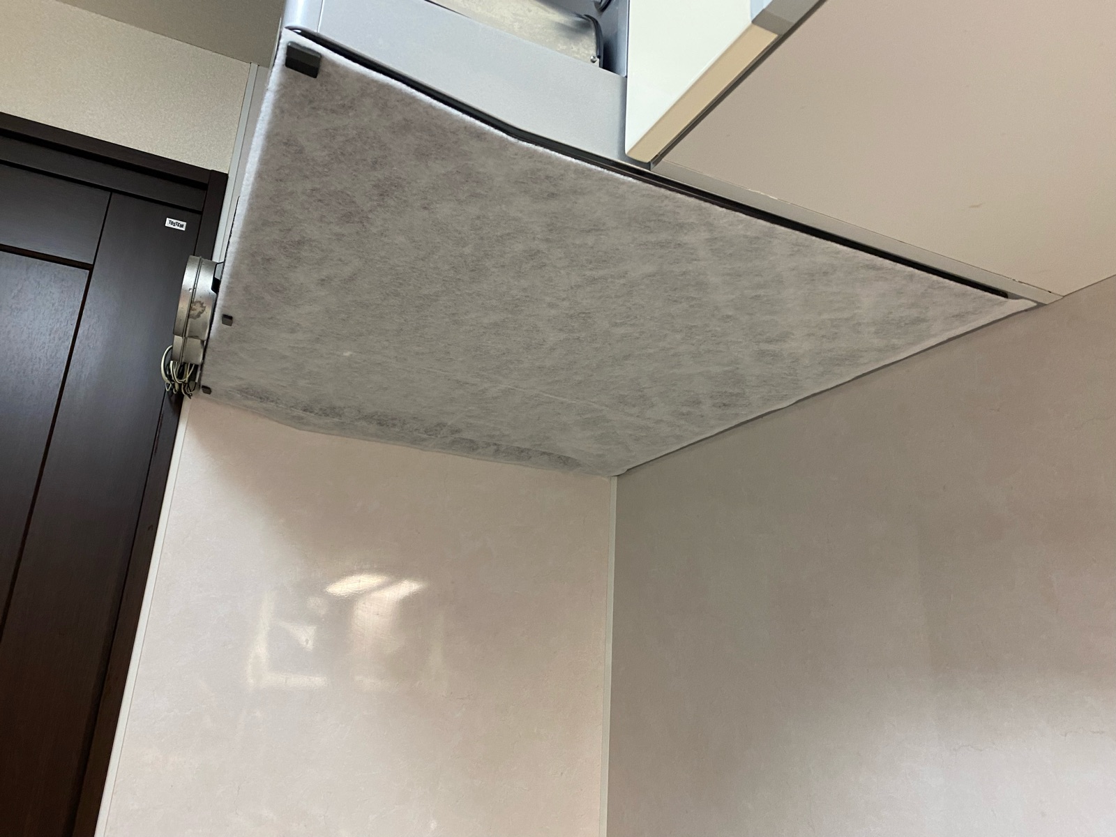 しっかり掃除した後に、レンジフードにフィルター設置。めちゃくちゃおススメです。