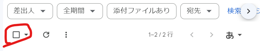 左上の四角を選択すると、全部のメール(複数ページある時は表示されているページのみ)が選択されるので「ごみ箱」へ