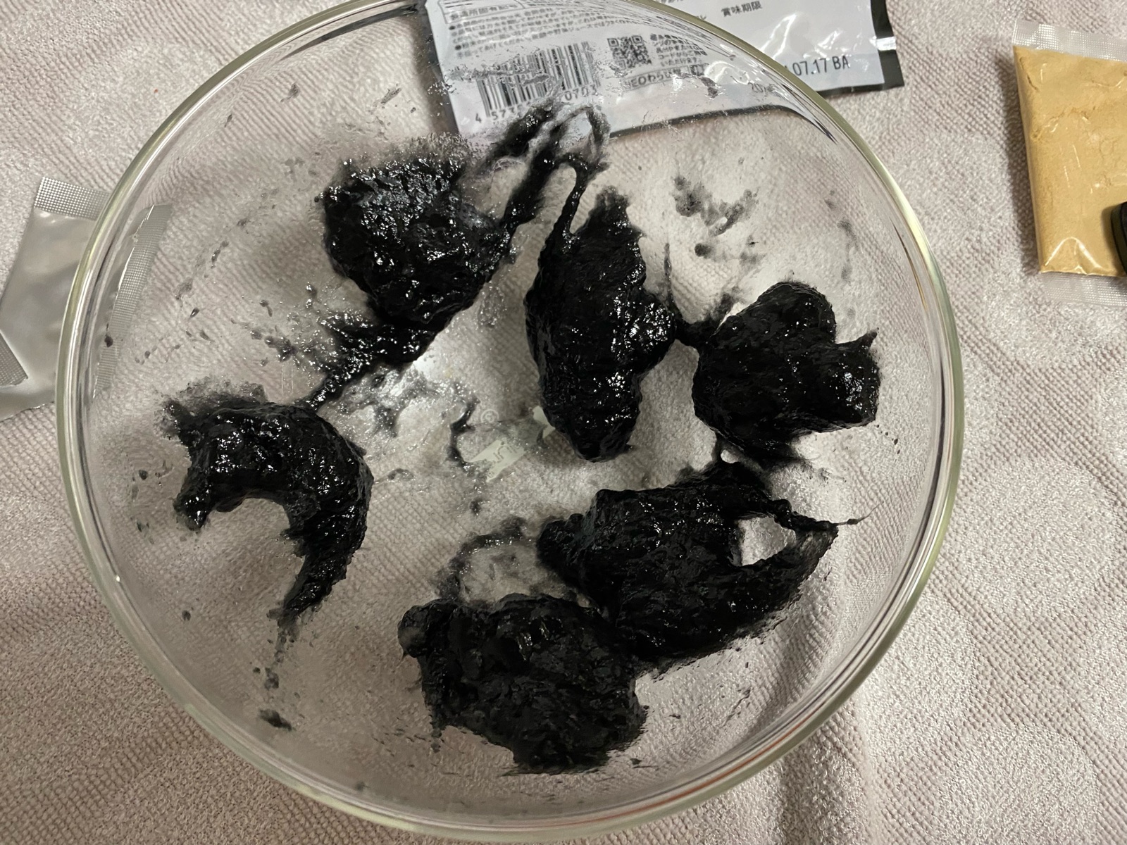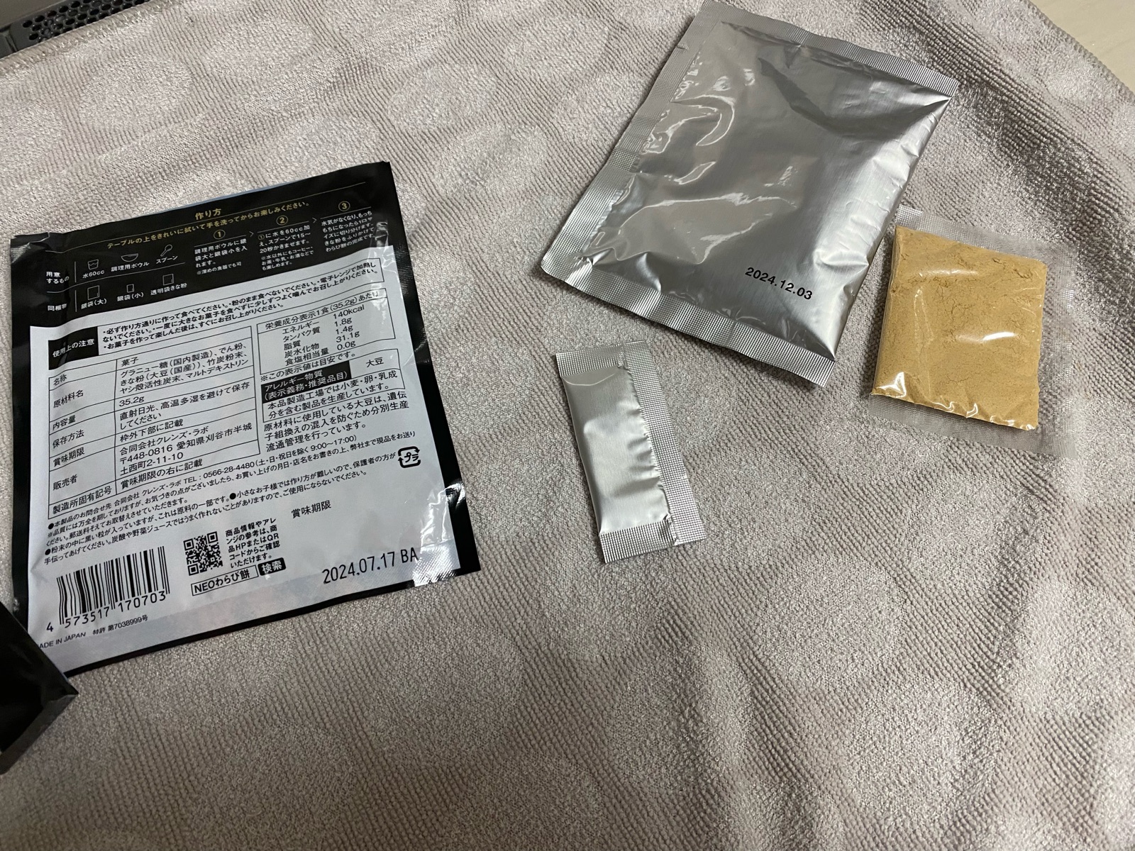 アルミパックの2つと水を混ぜると「わらび餅」ができるらしい。