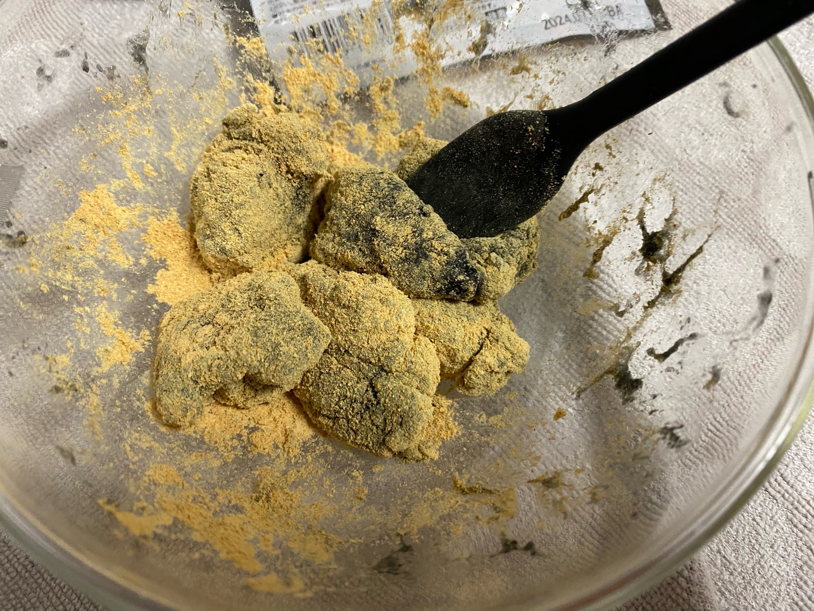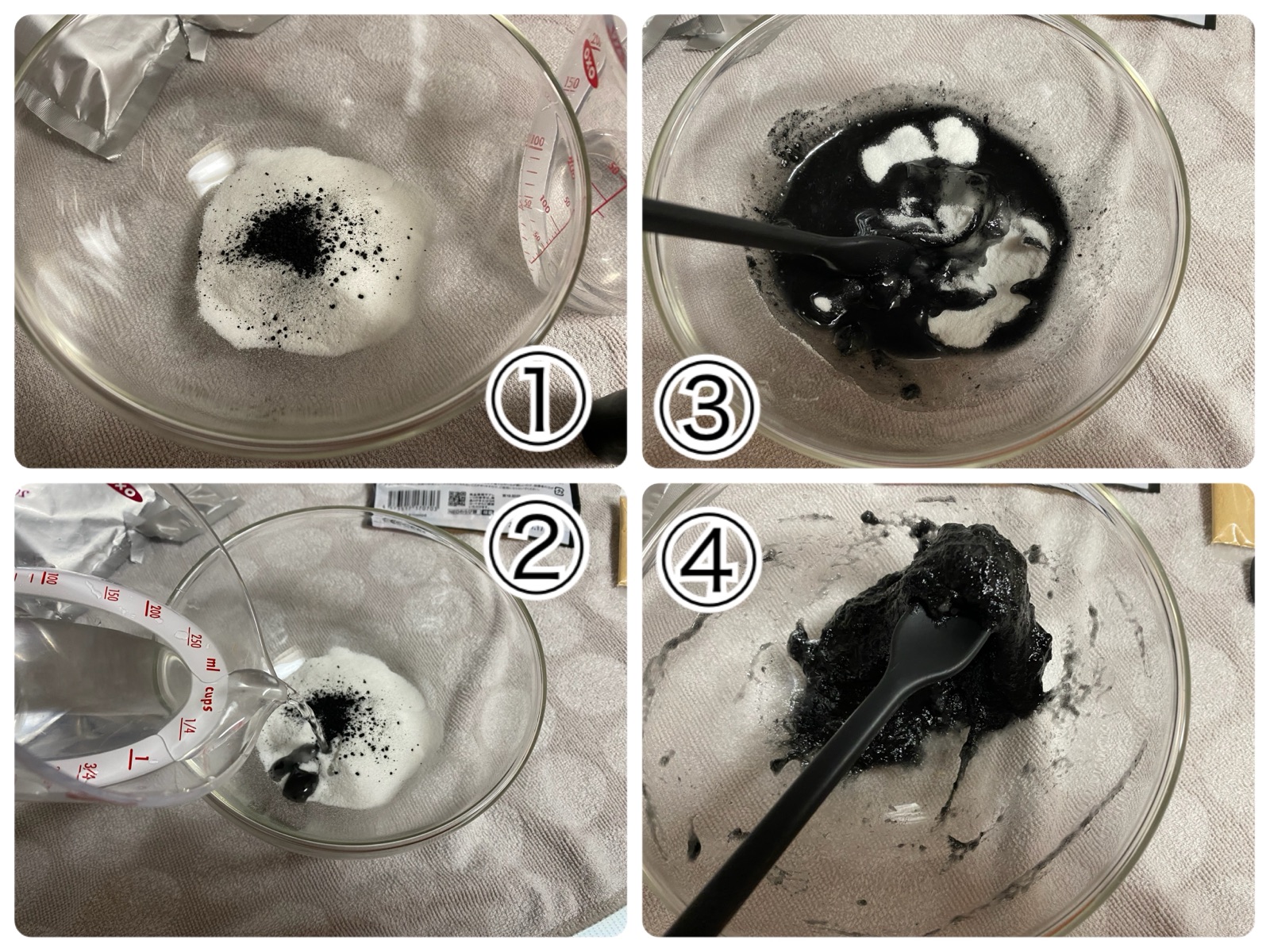 粉を2種類出して、計量した水を加え混ぜると直ぐに粘りが出て