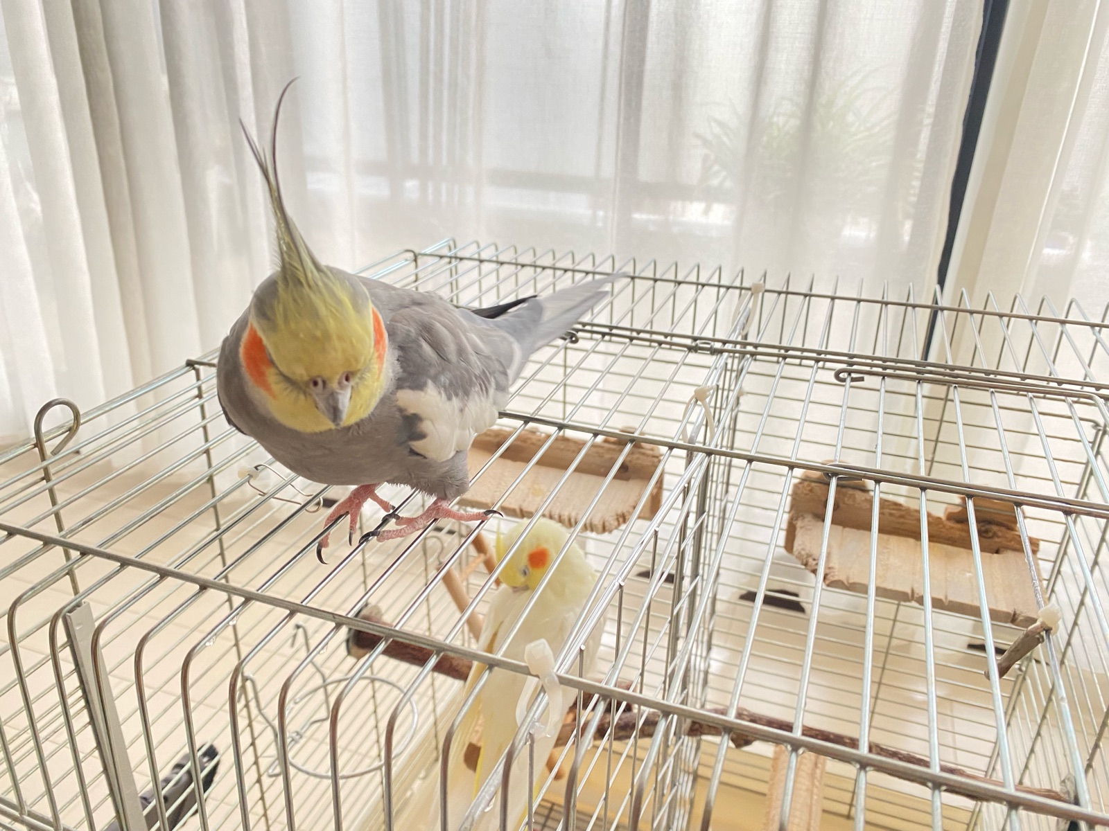 上にいるのが、オカメインコ(ノーマル)♂げんさん。今年7月で15歳。