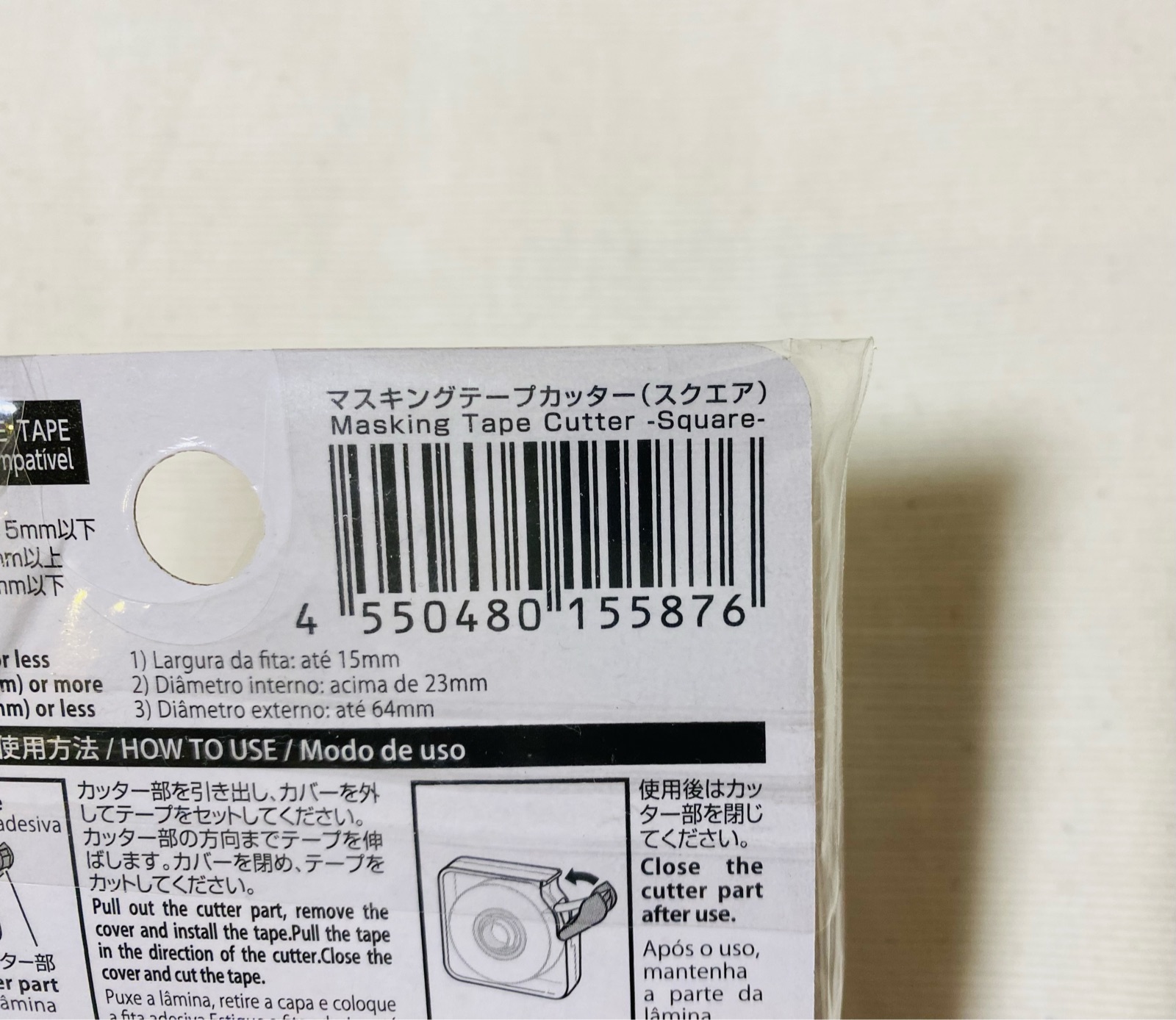 だったので、ダイソーの「テープカッター」の方が、内径が2mm小さくてもOKで、外径も大きいサイズにも対応していました。
