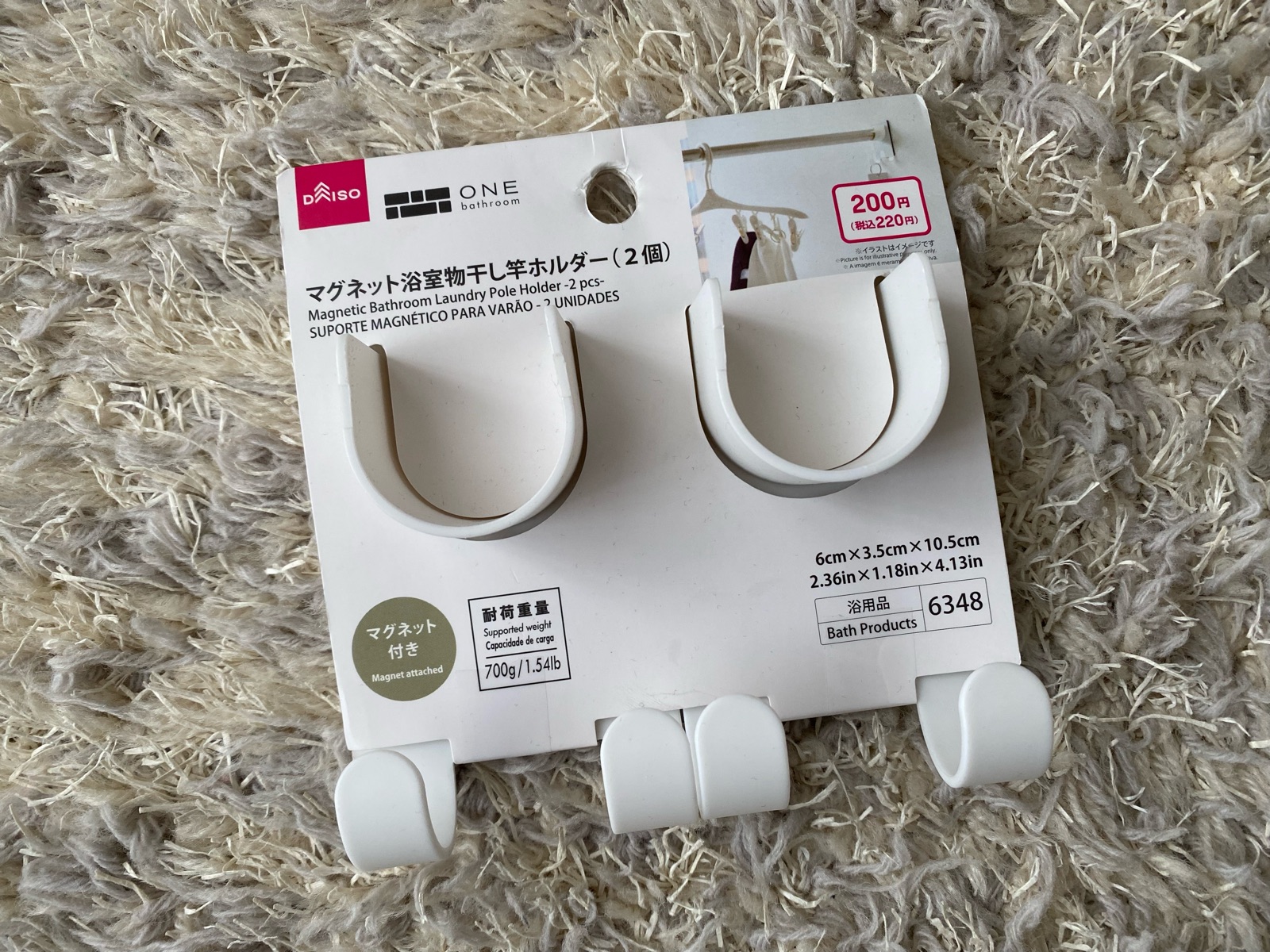 ONEシリーズから「マグネット浴室物干し竿ホルダー(2個)」税込み220円