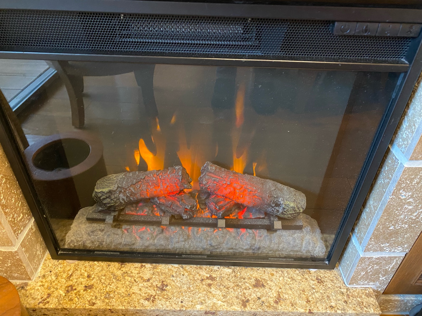 テレビの下の暖炉のスイッチをいれると