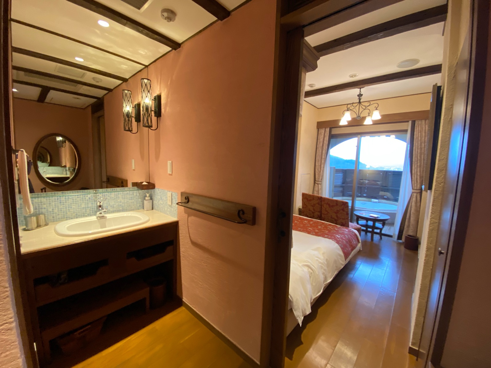 部屋に入ってすぐに露天風呂が目に入ってビックリ!!