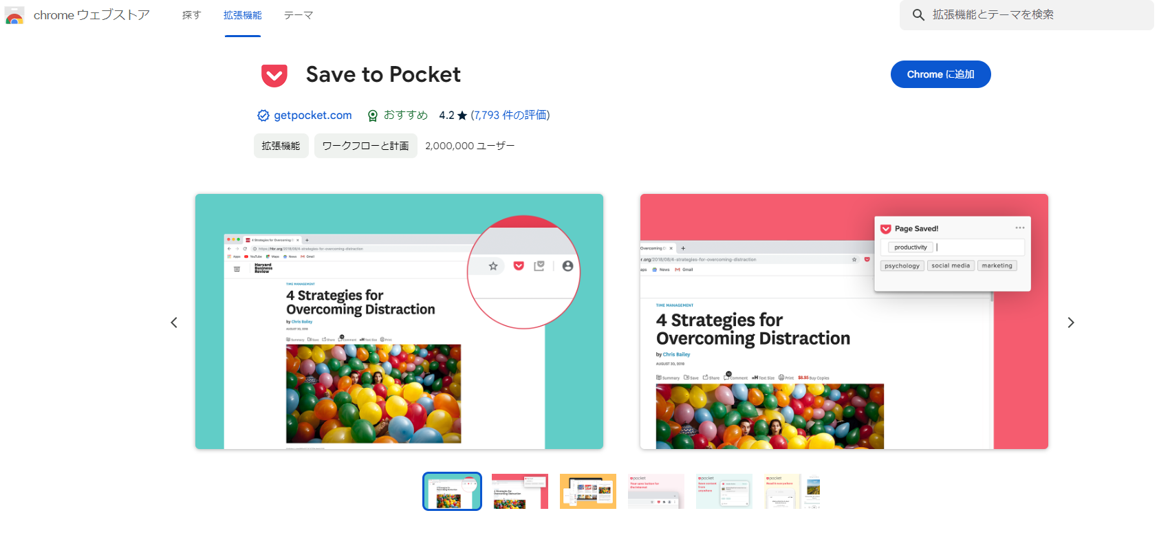 Google Chromeの拡張機能のバーに「Save to Pocket」が追加されます。