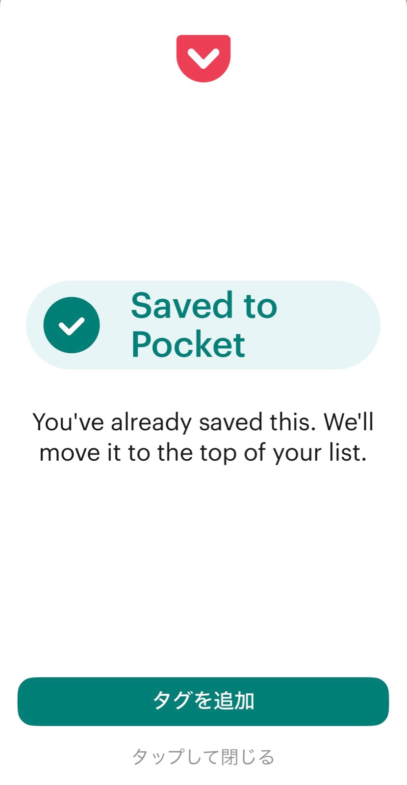 先ほどの「Save to Pocket」をクリックすると