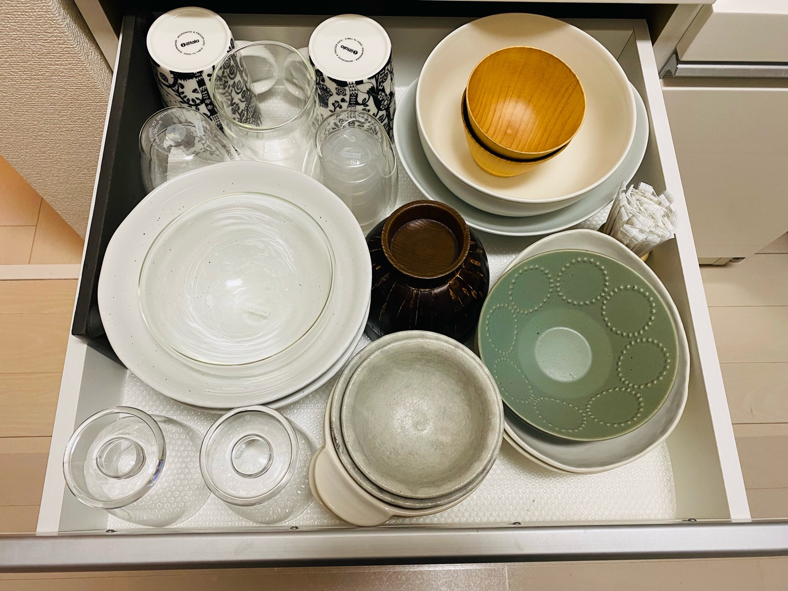 引き出しを開け閉めする時に置き方が悪いと当たっていた食器を