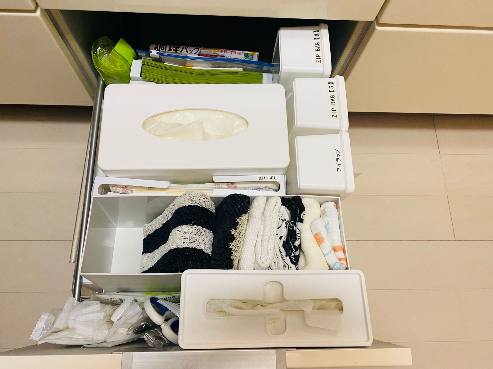 アイラップや保存用の袋は横から取り出しています。