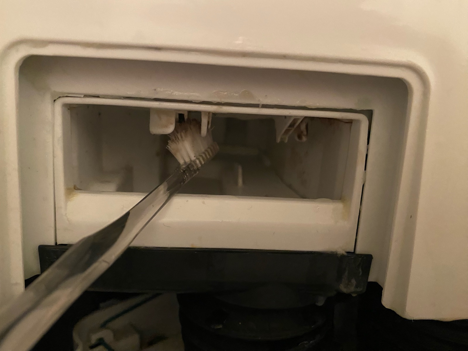 柔軟剤トレイを取り外した奥。