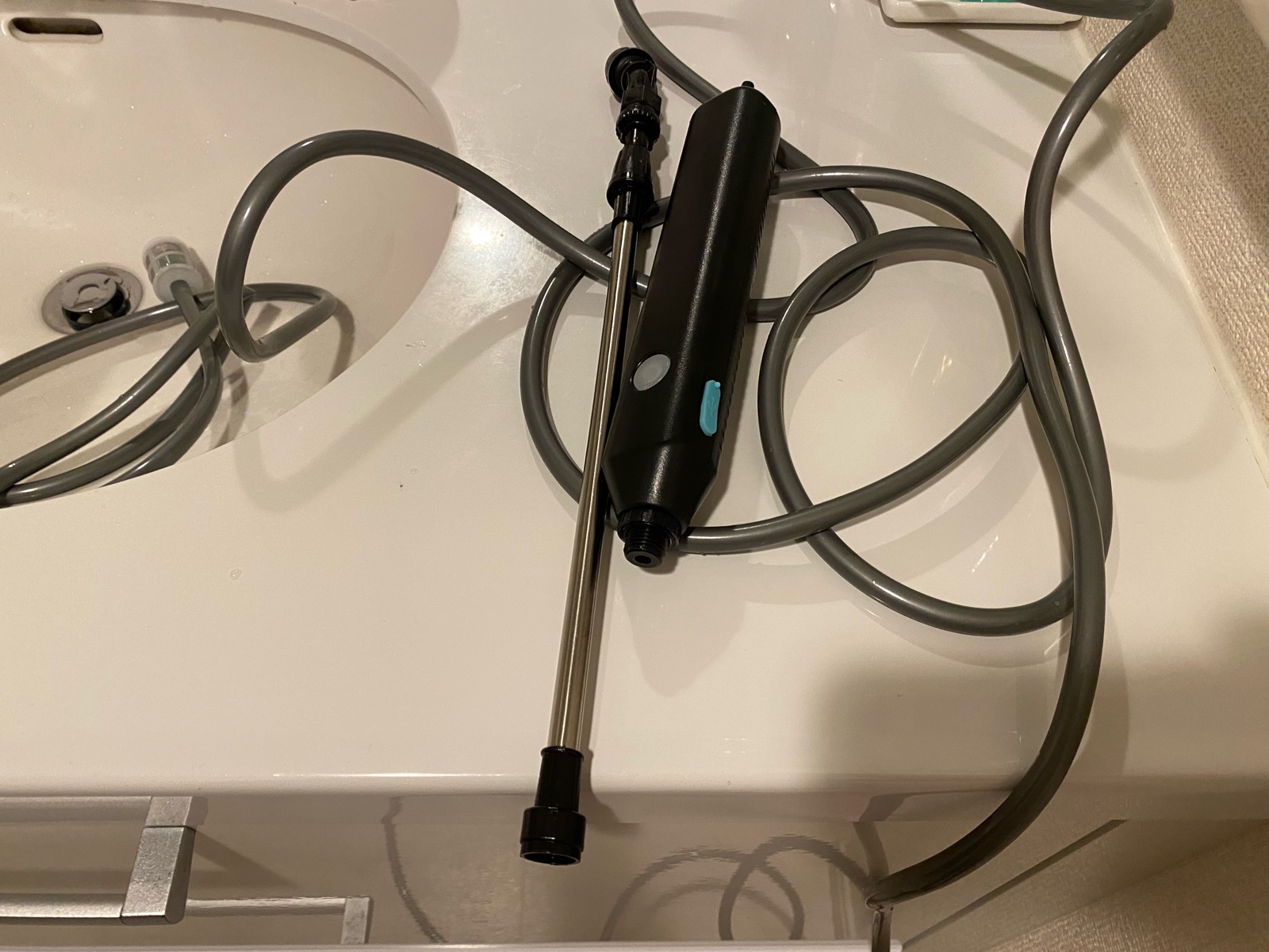 まだ、洗面ボウルにお湯が残っていたので、ついでに洗面ボウルの穴も噴霧してみました。(笑)