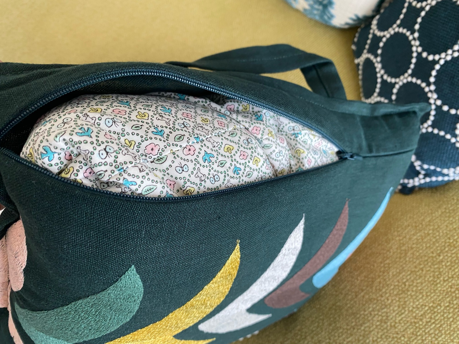 バッグにクッションを入れると、バッグをクッションカバーとしても使えるなんて素敵すぎる!!と